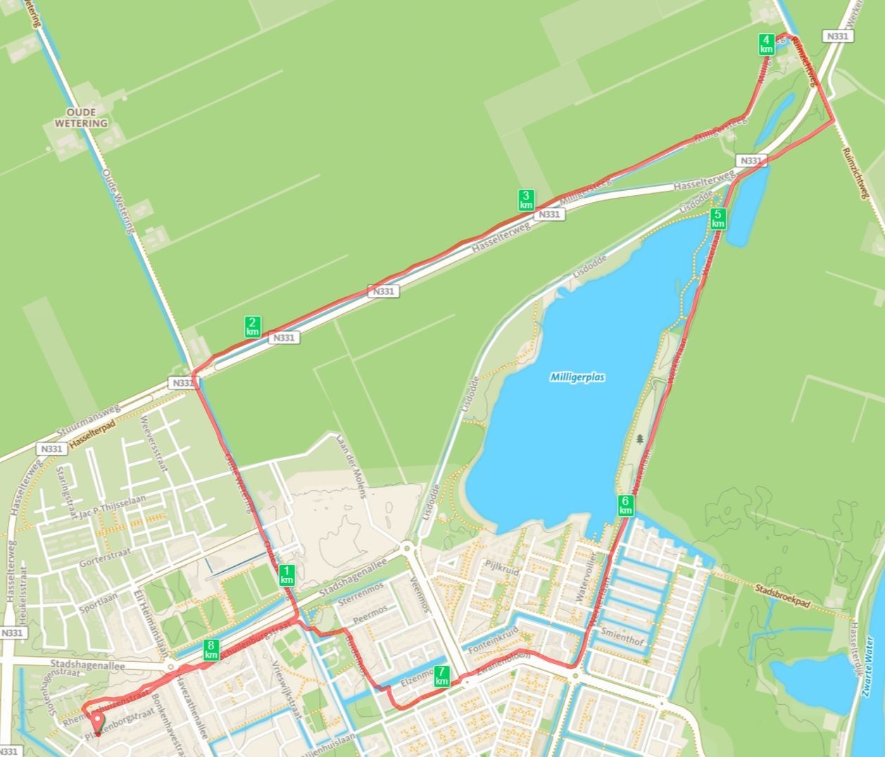 3. GPS en hartslag zijn geen enkele keer uitgevallen tijdens de run. Handig om wellicht te vermelden waar ik loop: deel 1: ik start vanaf huis in een nieuwbouwwijk aan de rand van de stad; deel 2: dwars door de weilanden met alleen koeien om je heen; 3. langs een grote recreatieplas met wat bomen en bebossing en tot slot weer terug naar huis door de nieuwbouw.