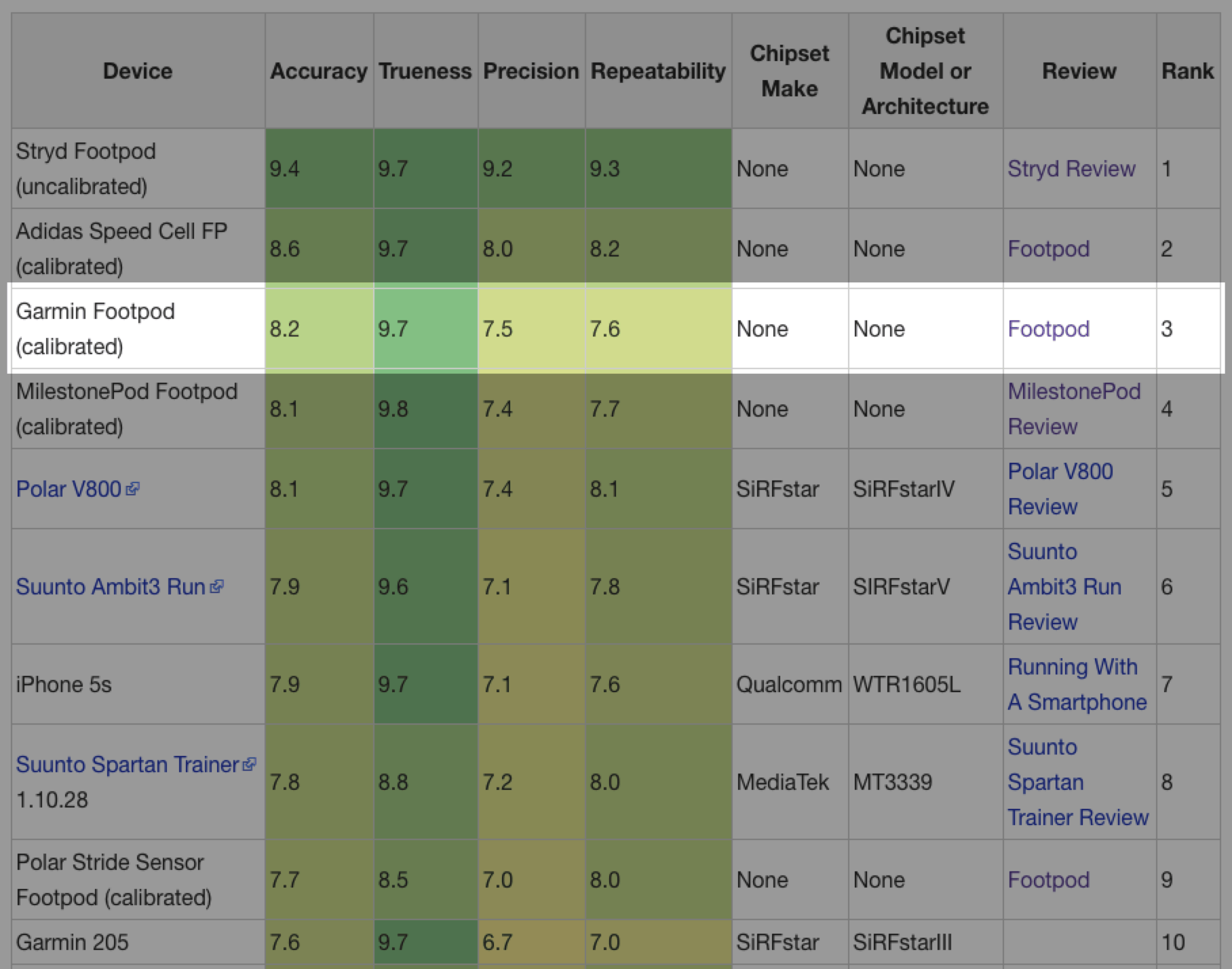 Fellrnr.com geeft inderdaad aan dat een ongekalibreerde Stryd footpod al nauwkeuriger is dan alle beschikbare opties. Maar mijn kalibratiefactor is 98,4. Oftewel, ik kan nog 1,6% betere tempo en afstand waarden krijgen. Op 5:00 per km is dat 5 sec per km......
