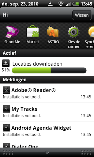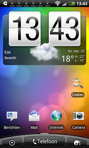 Het homescreen met de vertrouwde HTC Clock (die nu trouwens weer "flipt" !) Logo rechtsonderin is veranderd.