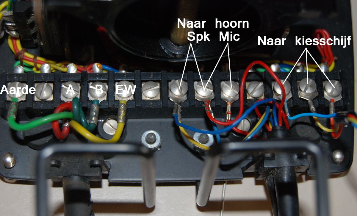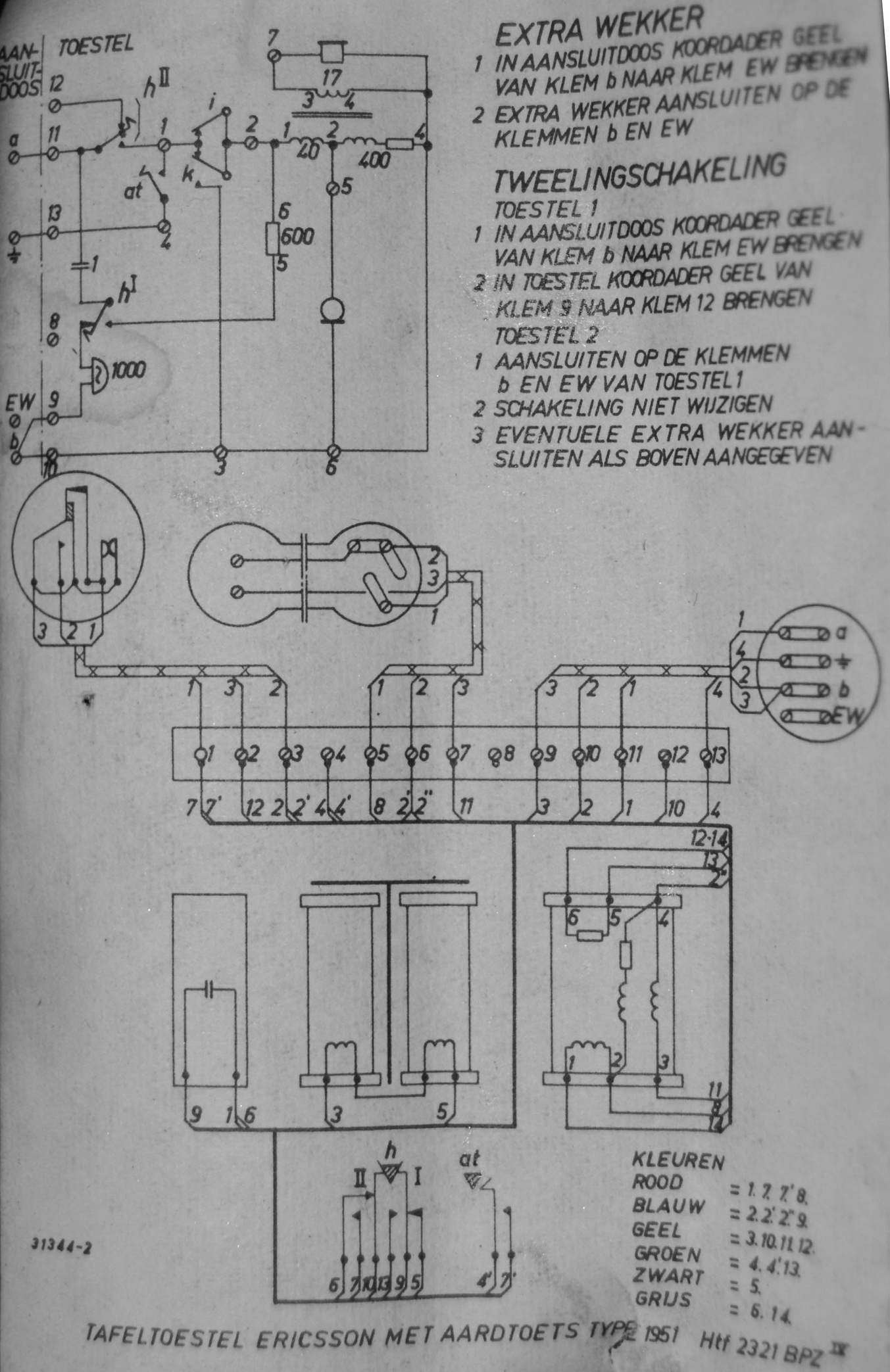 Aansluitingen (13 stuks) op de Ericsson type 1951 tafeltoestel telefoon