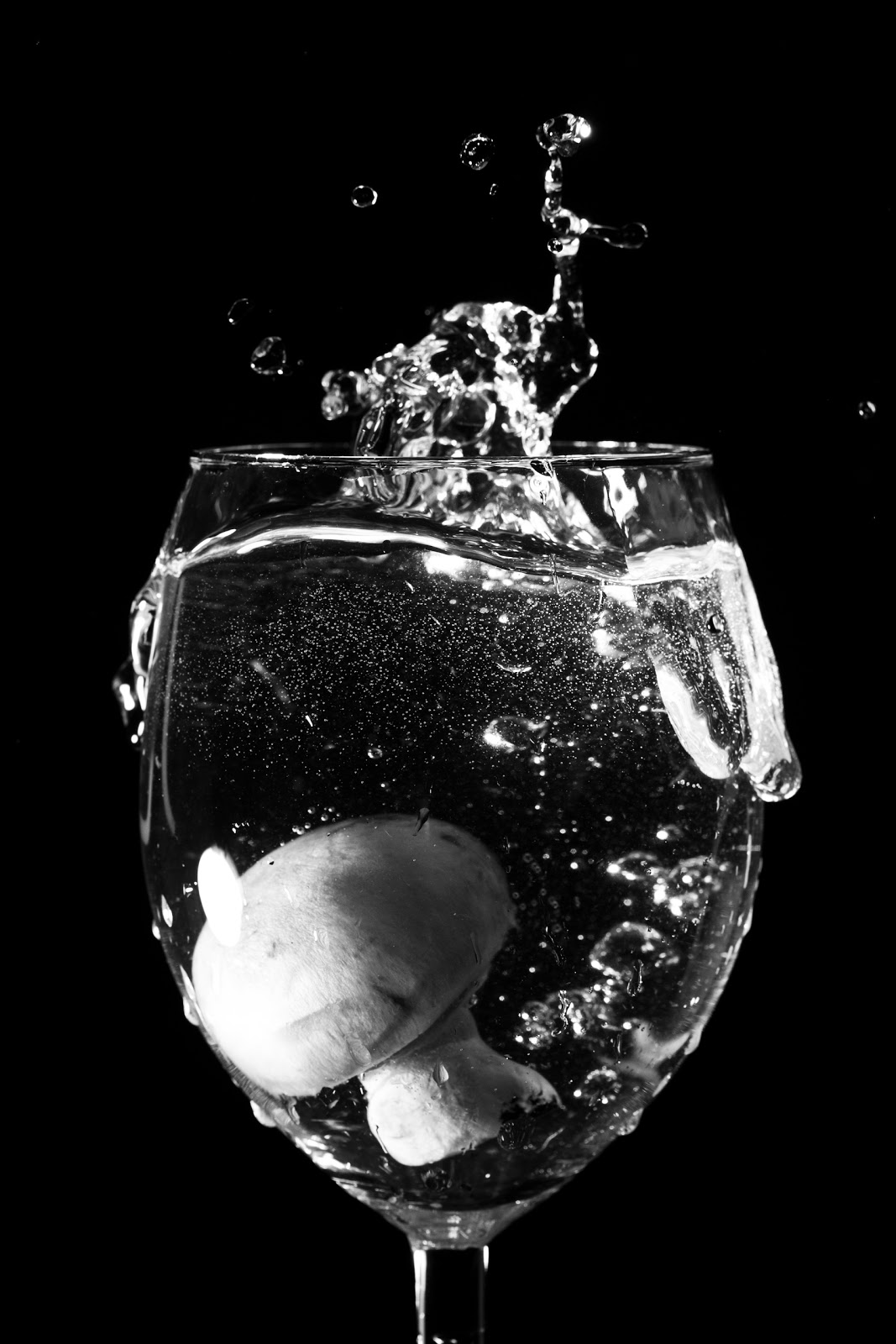 Mooie foto. Water is goed bevroren in het moment. Wel vind ik het jammer dat het een champignon is. Ik vind het overkomen als een klassieke foto, een ring/kers/ijsblokje had beter in het plaatje gepast naar mijn mening.