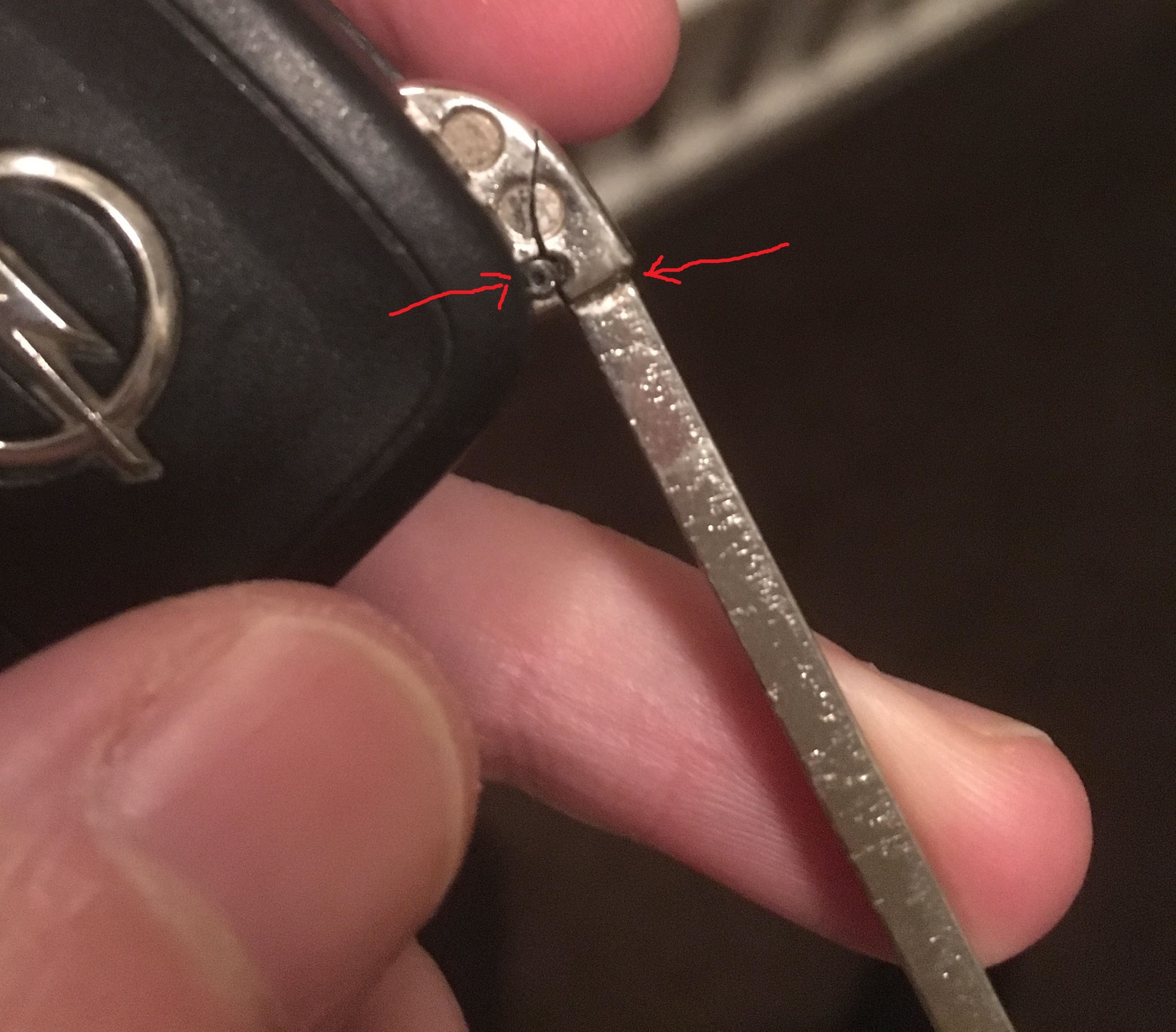 Op de foto zie je ook meteen het barstje trouwens. Ik zou dus eigenlijk alleen dat halve maan stukje nieuw willen hebben. Sleutelbehuizing open, baard in zijn geheel er uit, pinnetje er uit drukken zodat de baard uit 2 onderdelen bestaat, baard in het nieuwe onderdeel, pinnetje er weer in en sleutel weer in elkaar zetten. Maar je kan dus niet die losse onderdelen kopen. En als de behuizing niet normaal uit elkaar kan omdat het gelijmd is wordt het er ook niet beter op verwacht ik.