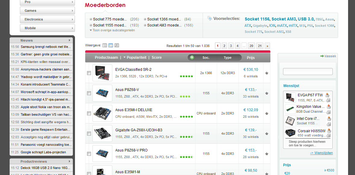 Mijn idee was dat je producten kon slepen, direct kon zien wat er overig in je wenslijst staat, of het compatibel is, enz.