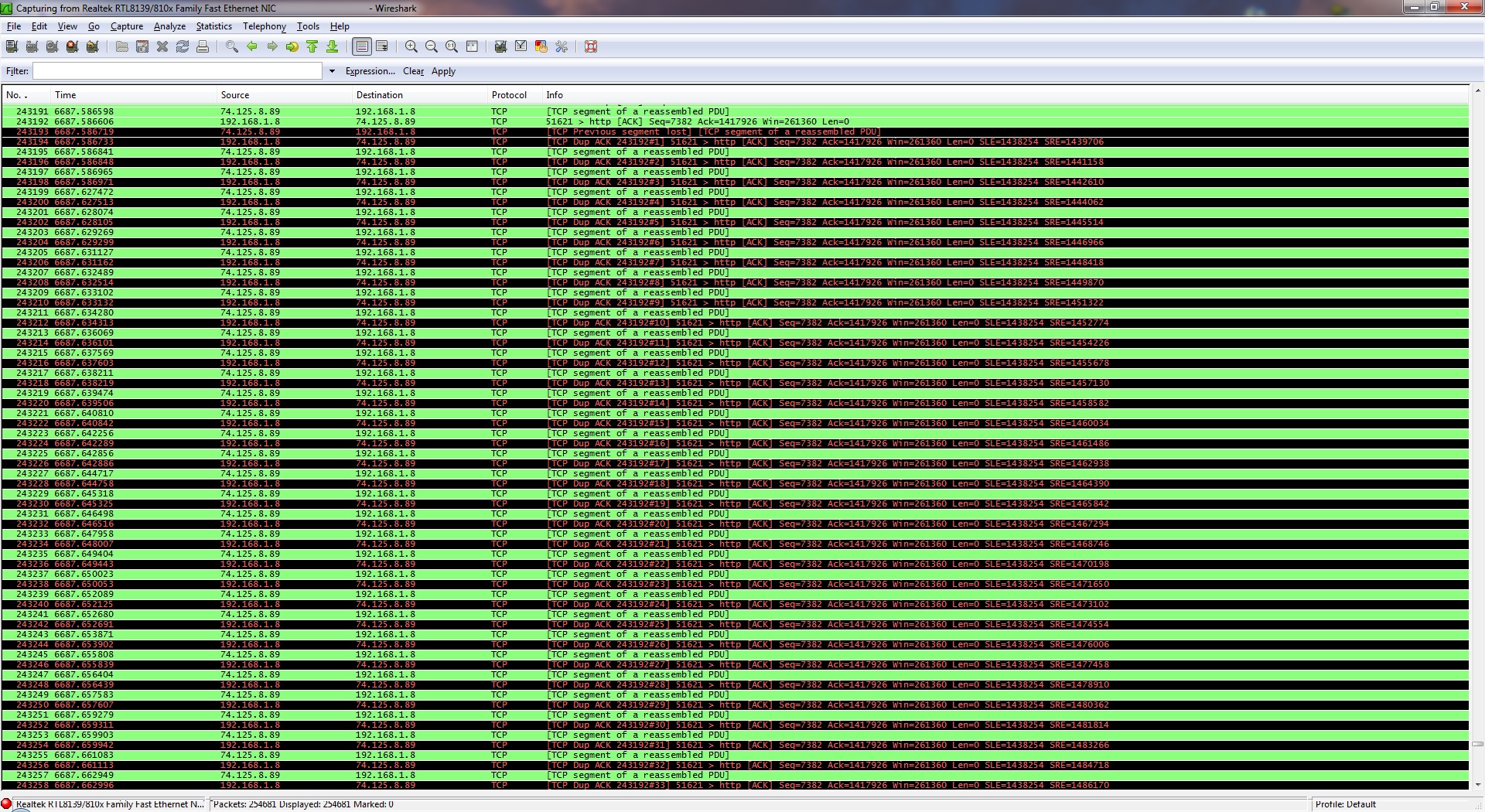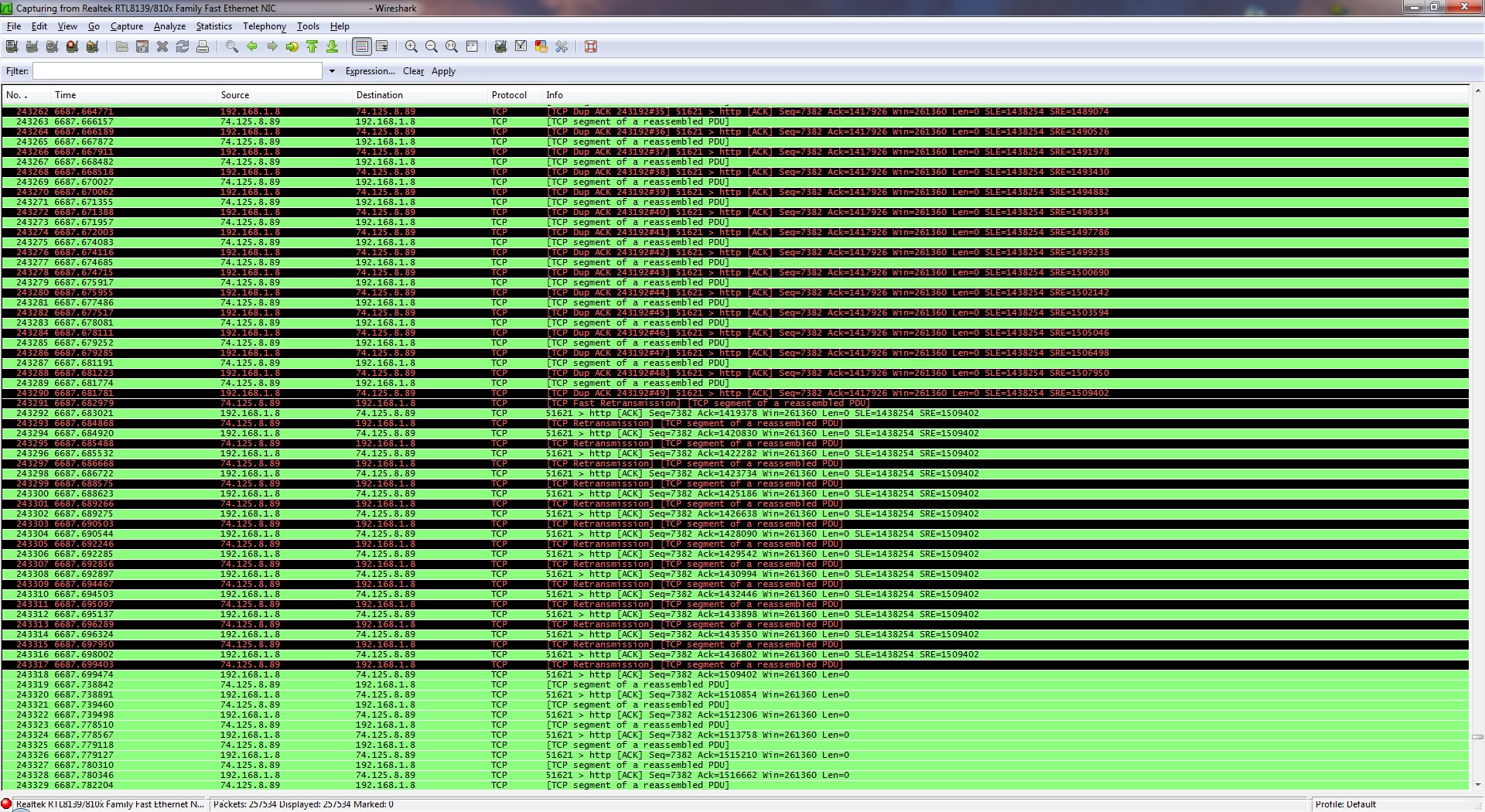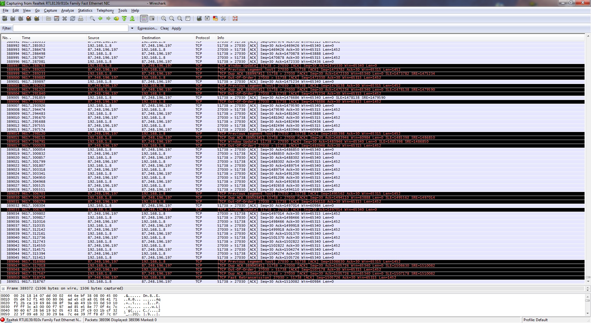 De laatste tijd is het zo dat op schijnbaar willekeurige momenten, het internet signaal ineens weg is. Dit is te zien aan gamen (World of Warcraft voornamelijk), nieuwsgroepen downloads en aan browsen op internet. Bij world of warcraft merk ik dan een enorme lag-spike of een disconnect, de nieuwsgroepen download valt enkele seconden helemaal naar 0 Kb/sec en als ik toevallig op dat moment een internet pagina aan het laden ben gaat dat ineens ongelofelijk langzaam.