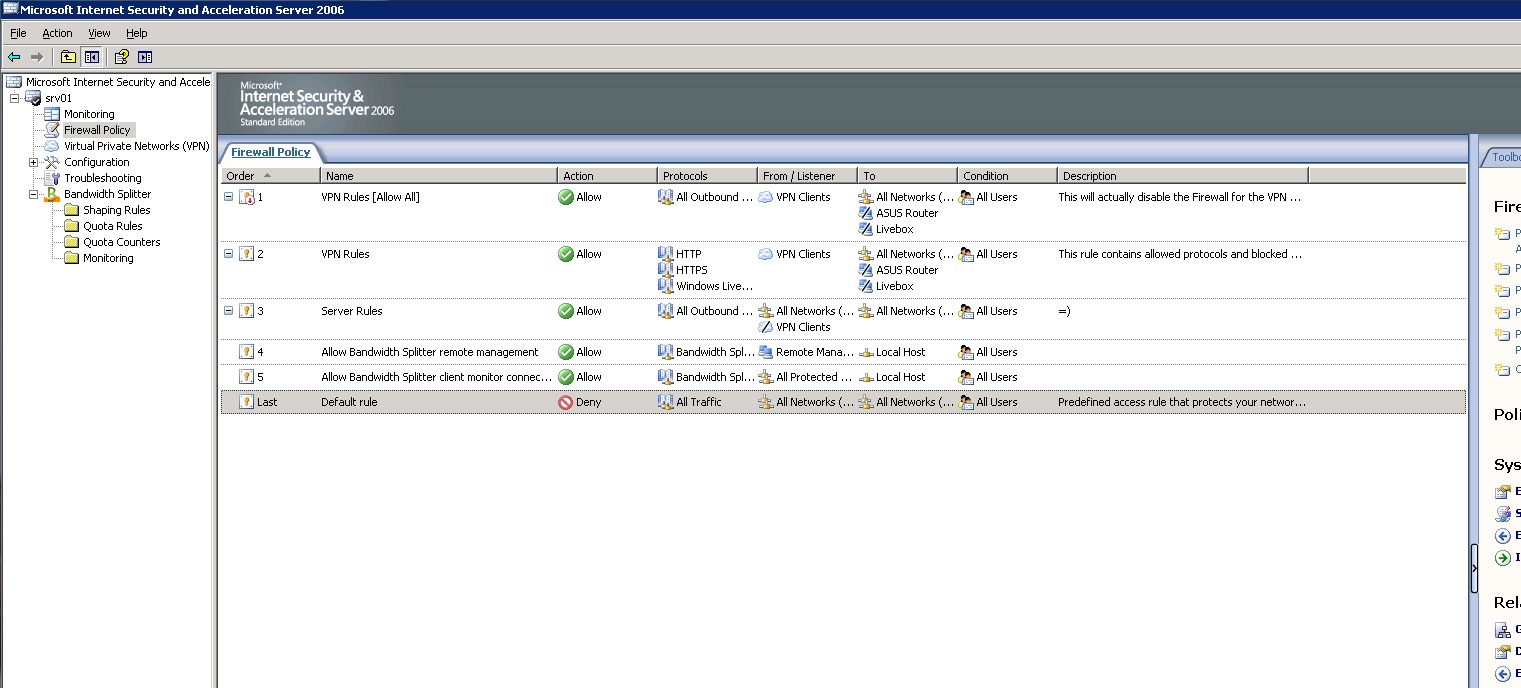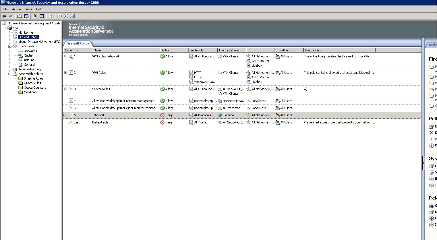 Ik heb al een enige tijd mijn ISA server draaien voor test, ik kan outbound connecties blokkeren en toestaan etc...