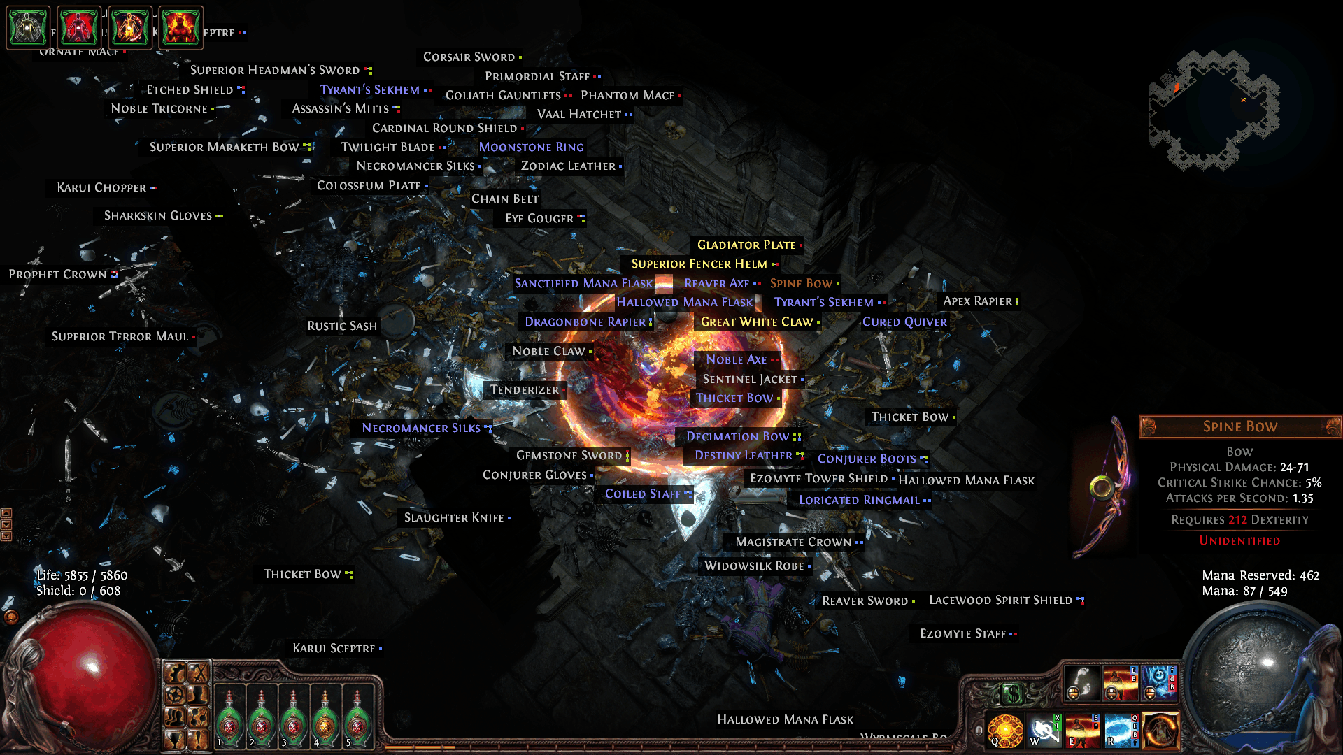 Ja dat wegrennen doe ik. Zeker in een corrupted area. De mapjes zijn te doen, maar niet altijd de eindbazen. Ik heb nu ook 130 regen. Ik dacht dat een spell incinerate totem veel meer verbruikte dan FT. Afhankelijk van de soort tegenstander gebruik ik item rarity, added chaos of faster casting.