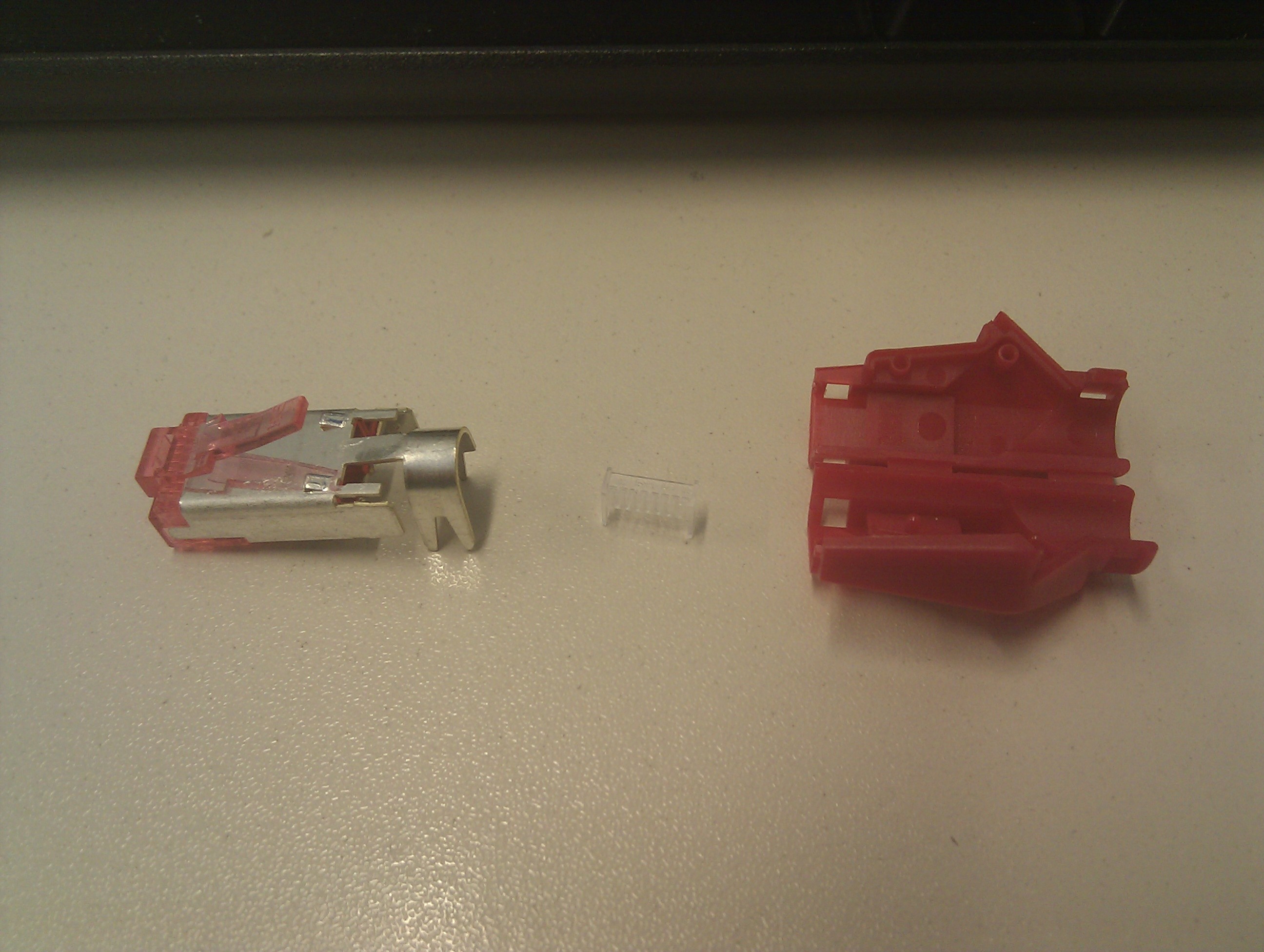 Het probleem is dat je met een gewone RJ45 tang de stekker kapot drukt, je druk dan het ijzer naar binnen ipv de normale aderen. Ook moet ik nu met de hand het "knijpertje" om de tang heen drukken. Kan iemand mij vertellen welke tang ik hiervoor nodig heb?
