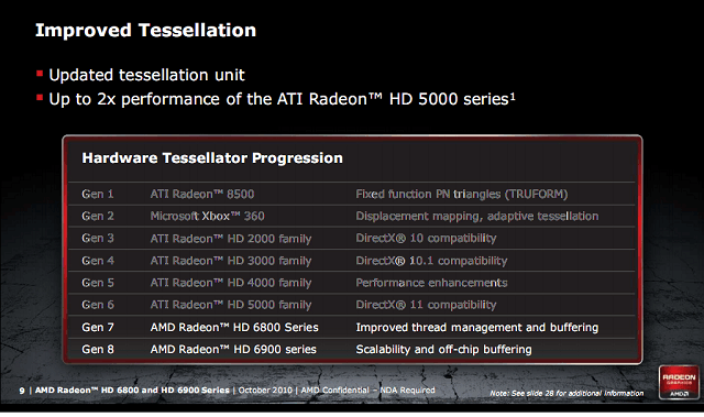 Bijna exact één jaar na de launch van de eerste Evergreen gpu's, verschenen op 22 oktober 2010 twee nieuwe videokaarten op de markt uit de nieuwe Northern Islands generatie. De HD6850 en HD6870 kaarten zijn voorzien van een Barts gpu. De kaarten werden warm ontvangen, maar zorgden ook voor enige verwarring. In tegenstelling tot wat de naamgeving doet vermoeden, vervangen deze kaarten namelijk niet de populaire HD5850 en HD5870 in het performance segment, maar nemen ze de hun markpositie in vlak boven het niveau waar de op Juniper gebaseerde HD5770 stond. De HD5000 generatie was op dat prijspunt namelijk zeer matig vertegenwoordigd. De HD5830 was niet instaat goed te concurreren met NVidia's GTX460. Maar waarom dan die vreemde type aanduiding? Onderstaande plaatje moet dat verduidelijken. ![]() Zoals je ziet zal Juniper vorlopig in de line-up blijven staan. Aangezien AMD hier niet de concurrentie wil nadoen en de chip rebranden naar bijvoorbeeld HD6600, moest Barts wel een naam krijgen die de verkopen van de HD5770 niet zou schaden. Met een Barts als HD6770 kun je je voorstellen dat Juniper onverkocht op de schappen zou blijven liggen. Ook technisch gezien is Barts een x8xx product. De die size is vergelijkbaar met die van een HD4800 en de geheugencontroller is 256-bits breed. ![]() Wat is Barts? Eenvoudig gezegd is Barts een geoptimaliseerde Cypress gpu. AMD heeft hoog ingezet op efficiency van het design. Dat betekent meer performace per Watt, die size en.... per Euro. De nieuwe gpu kent twee verschijningsvormen: de Barts Pro (HD6850) en Barts XT (HD6870): HD 6850 specs
