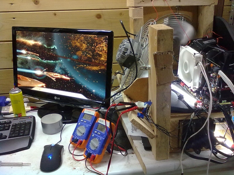 hierna klapte de kaart er regelmatig uit tijdens het opstarten van windows, het voltage is op de een of andere manier omhoog gegaan en niet meer aan te passen,