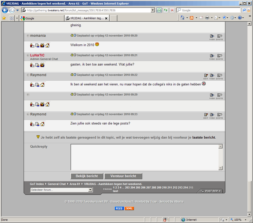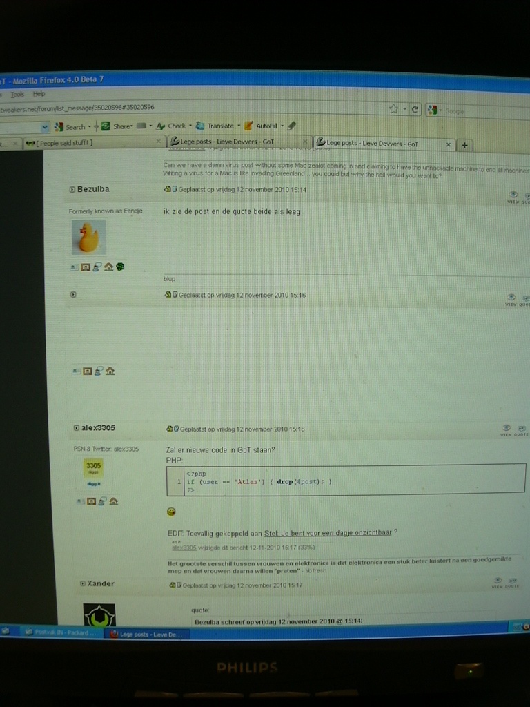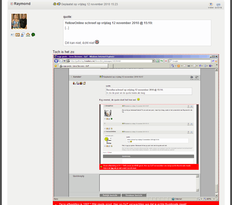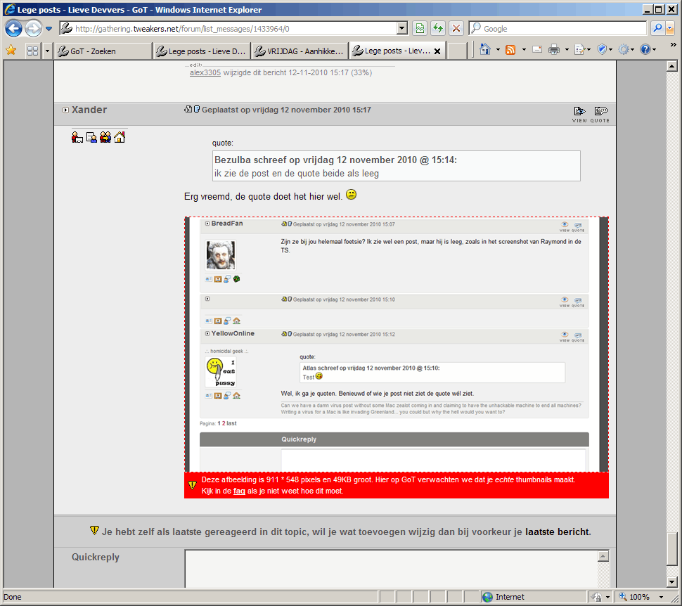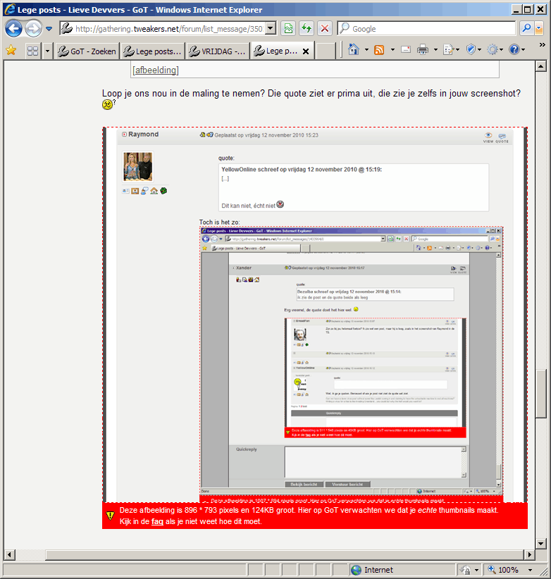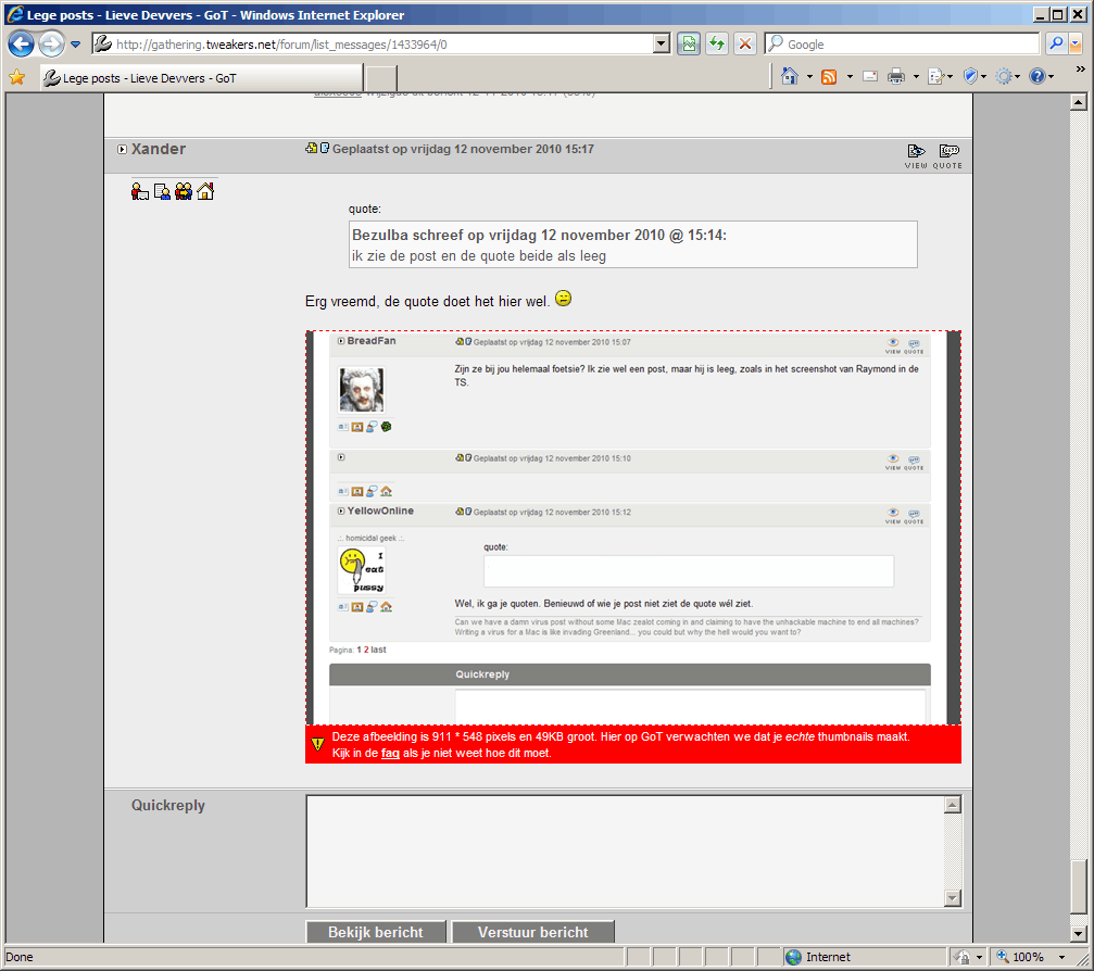 Een aantal mensen zien steeds lege posts, zouden jullie daar eens naar kunnen kijken? Het lijkt erop alsof bij een bepaalde gebruiker de "ignore user" functie is ingeschakeld. Ik dacht dat bij tweakers deze functie niet aan stond?