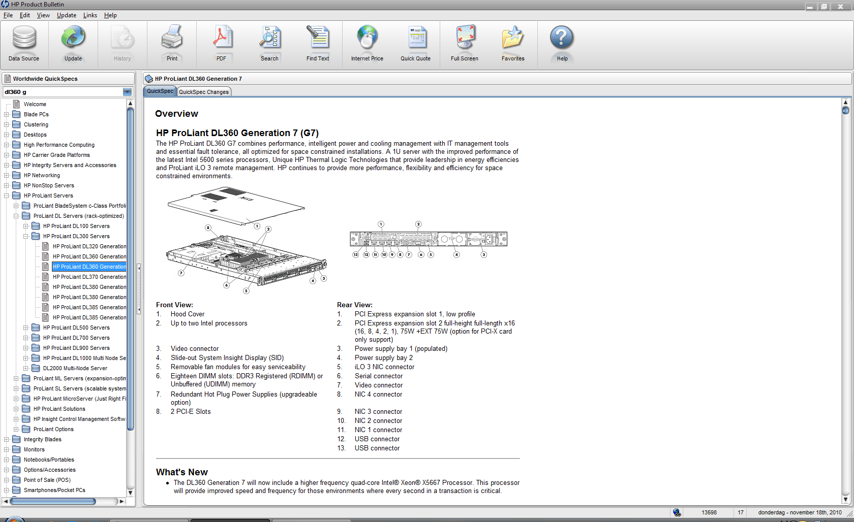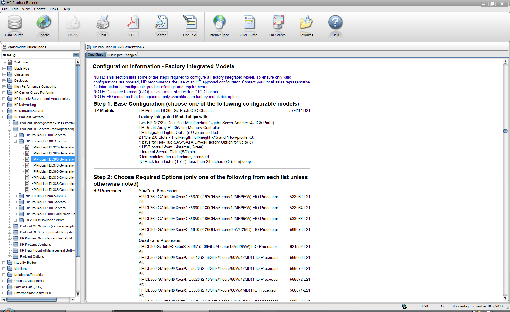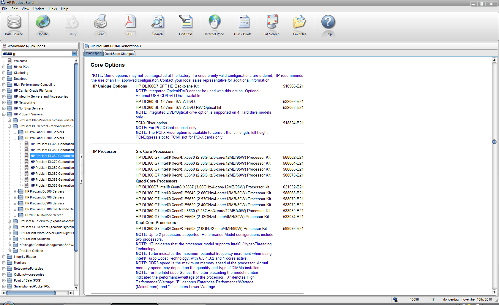Product Bulletin DL360 G7 specsProduct Bulletin DL360 G7 Configuration OptionsProduct Bulletin DL360 G7 Core OptionsProduct Bulletin DL360 G6 brochureProduct Bulletin DL360 G7 foto