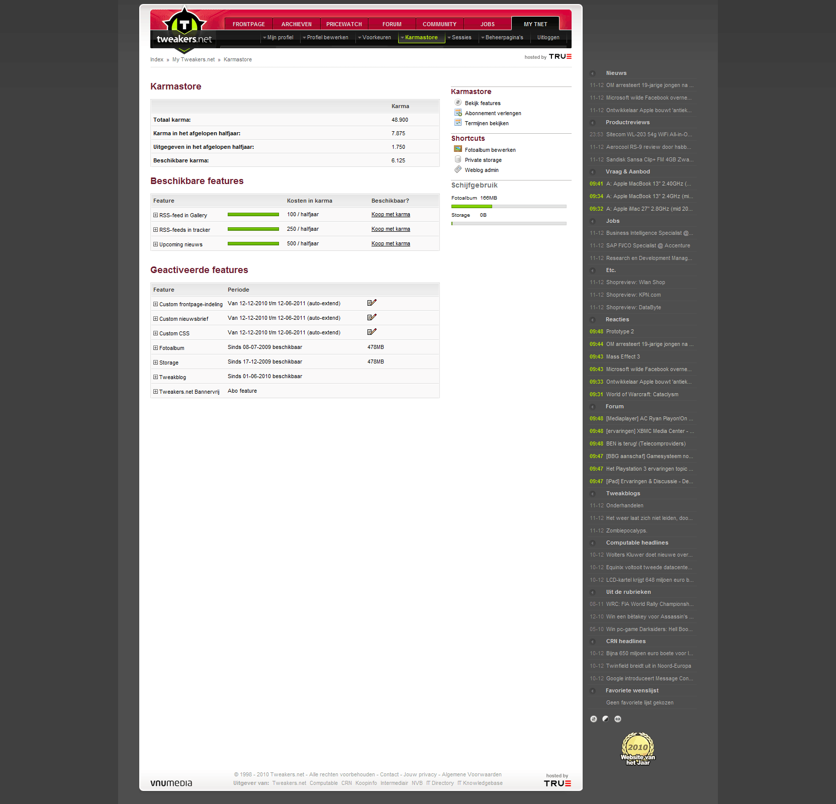 Om niet in herhaling te vallen, heb ik direct de karma-store-features weer geactiveerd tot 12 juni 2011.