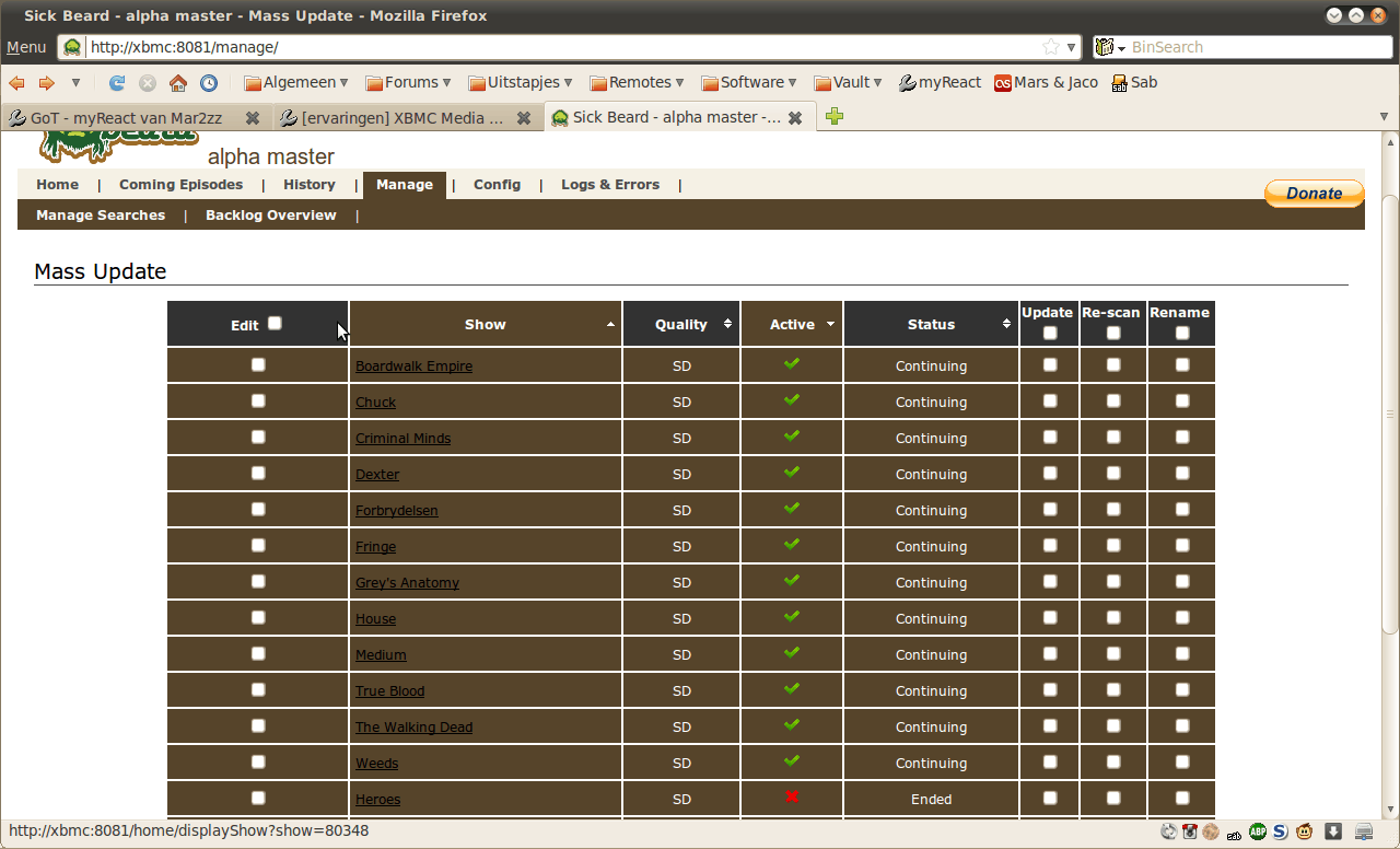 Let wel op dat bijv het Bierdopje plugin een aantal series niet kan vinden omdat ze net even anders heten (bv Sanctuary, human target, csi, csi miami, v 2009, law and order svu).