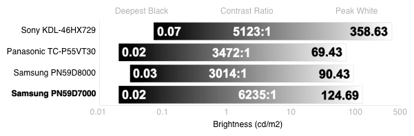 *Let op: zwartwaarde's van de D8000 plasma en D6900 plasma zijn een stuk minder.