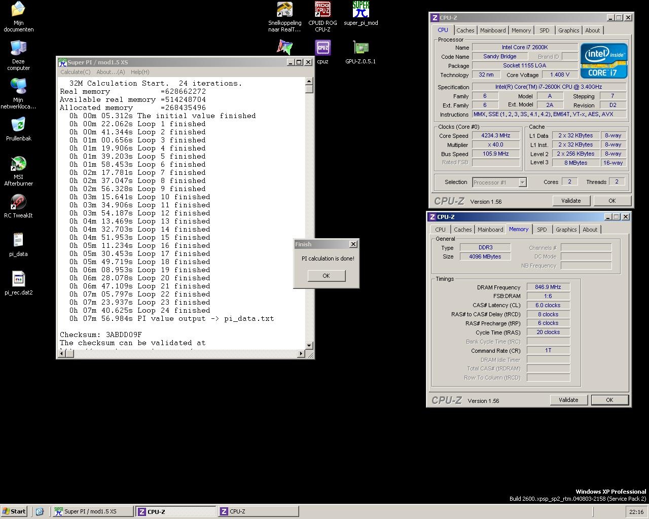 Draai nu nog even @stock om het systeem te testen, heb mijn 4x2Gb 1600Mhz Corsair XMS3 uit mijn i5 overzet. En voor de i5 weer 2x2Gb