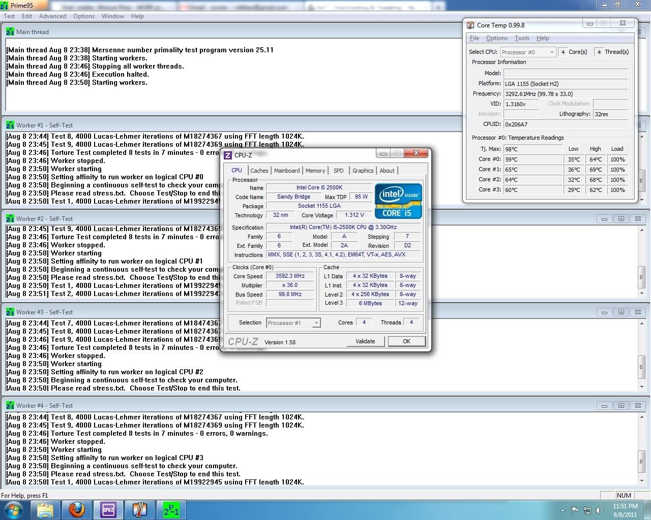 Ik ben in het bezit van een Asrock p67 Extreme4 met een XFX Core 750w (Single rail), Daarbij de Corsair Vengaence 1600Mhz low profile. En uiteraard de 2500k met als cooler: Noctua NH-U12P SE2 push<->pull effect.