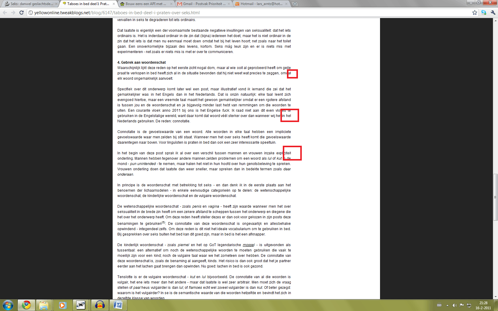 Ik was zojuist de tweakblog van YellowOnline aan het lezen en welteverstaan deze: Title TK: Taboes in bed deel I: Praten over seks