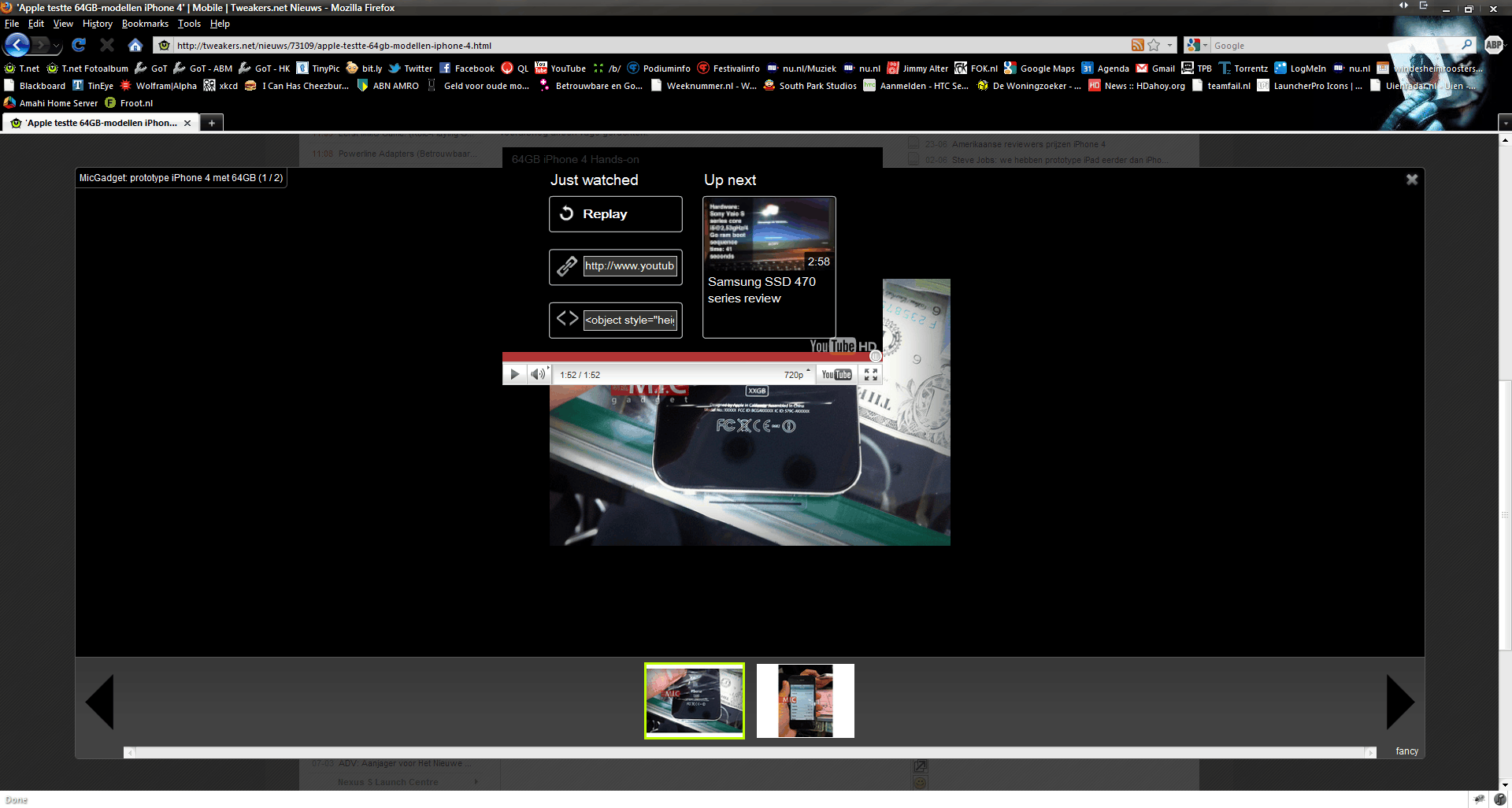 Fixed; YouTube heeft blijkbaar nieuwe embed-code die een iframe gebruikt, maar waarbinnen de player geen wmode=opaque/transparent heeft