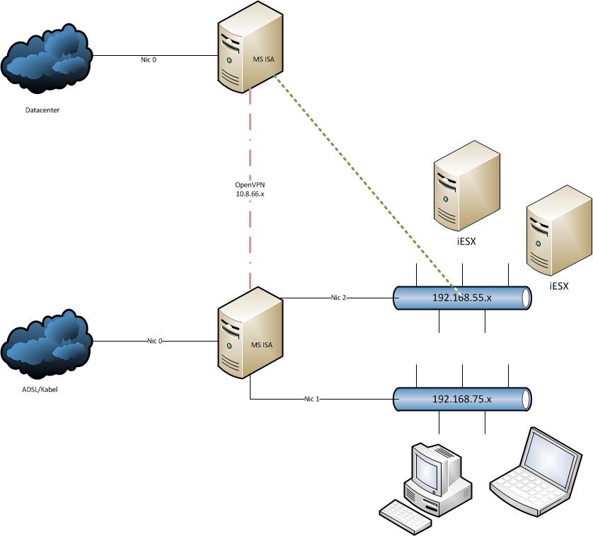 Er staan 2 isa servers op 2 verschillende locatie's. tussen de 2 isa's is een open vpn verbinding.