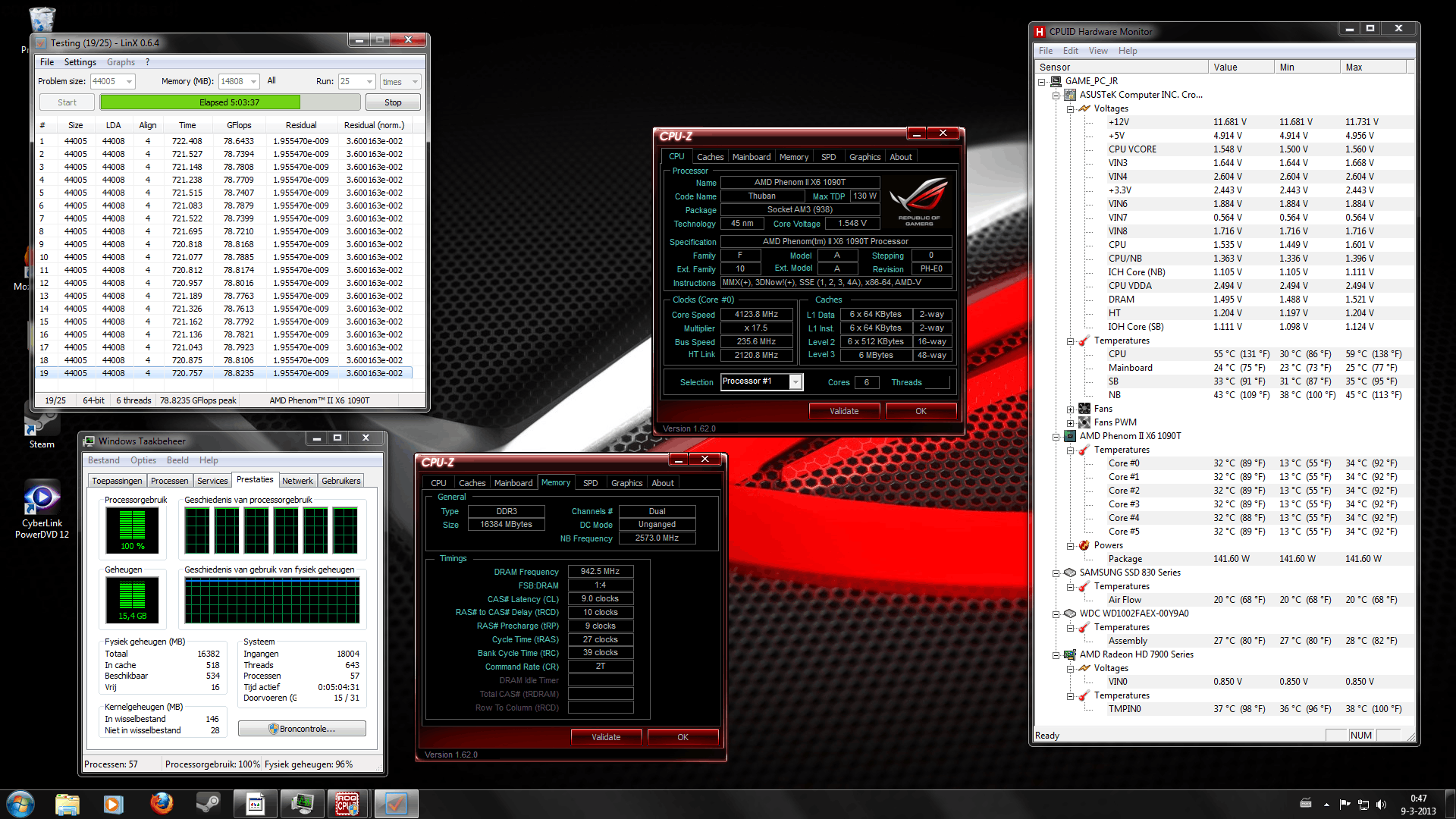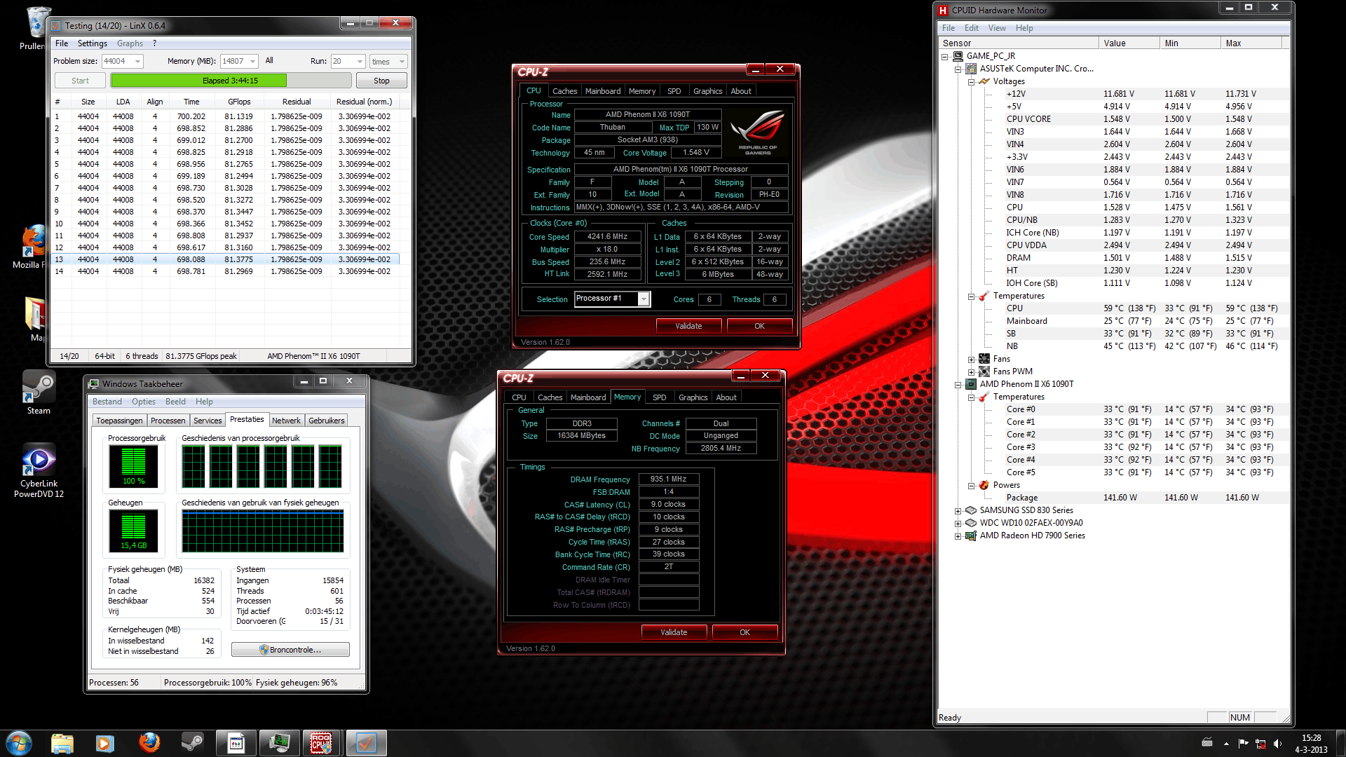Wauw, die gebruikt aardig meer volts dan mijn oude 1100T. Die kon hetzelfde aan op 1.488v 5+ uur...