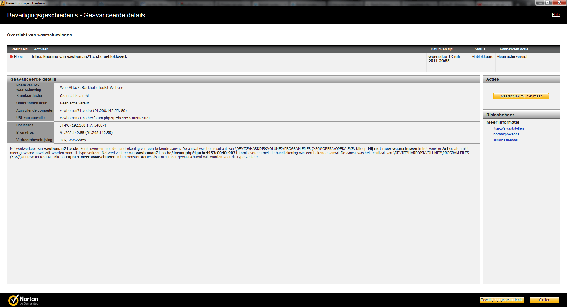 Sinds vanochtend geeft Kaspersky Anti-Virus (zakelijke variant) een waarschuwing bij het bezoeken van