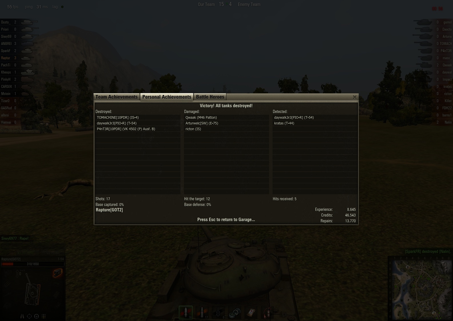 Net een potje waarin ik in een 3002DB al het werk moest doen omdat de Panther II's en Tiger II's niet durfden.. walgelijk!