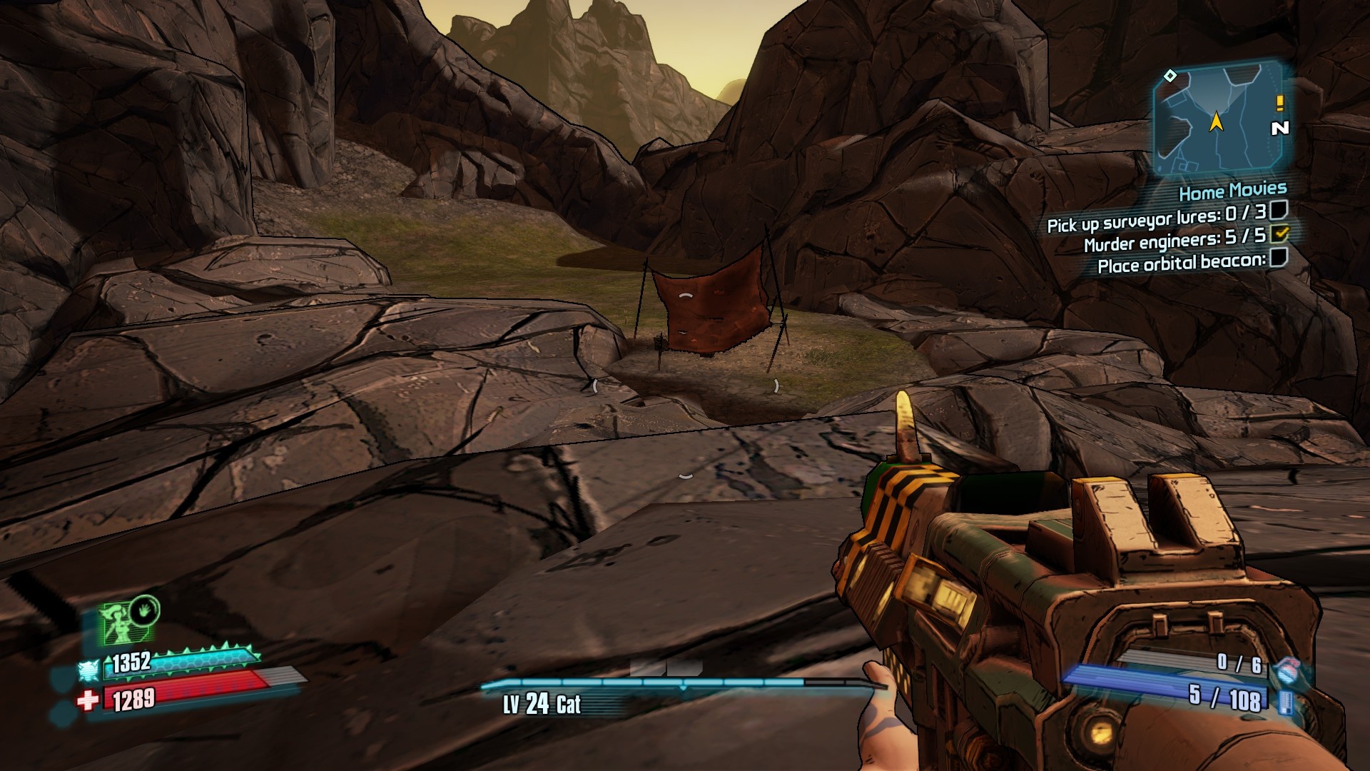 Wat ik nu echter kan doen, is mijn lvl 18 Murduring Slagga gebruiken, een SMG met 69x3 damage op een firerate van 8,8 met slag en een accuracy van 67.8. Voorheen was dit ding nog handig om dingen snel te slaggen en dan snel een ander wapen te pakken, maar nu doet elk schot dus ineens 3.5K damage ipv 69 en ik spuug er zo'n 26 per seconde uit (terwijl het me maar 9 rounds per seconde kost). Dat is ook in TV mode (in ieder geval aan het begin nog) genoeg om vanaf een enorme afstand alles neer te maaien. En met die accuracy bedoel ik dus ook echt alles, ik gooi een enorme deathcloud over een area heen. Mocht iets me raken dan kan ik snel decepti0n in vluchten en als die af loopt is mijn shield weer gemaxt. Ben alleen nogal kwetsbaar om geoneshot te worden zo, maar zolang je afstand kunt houden raken ze me meestal toch niet.