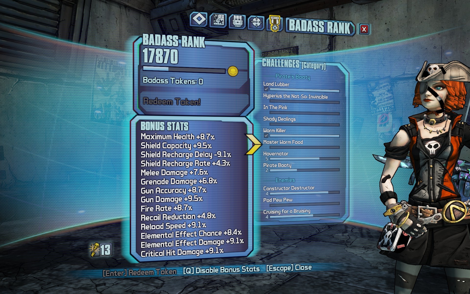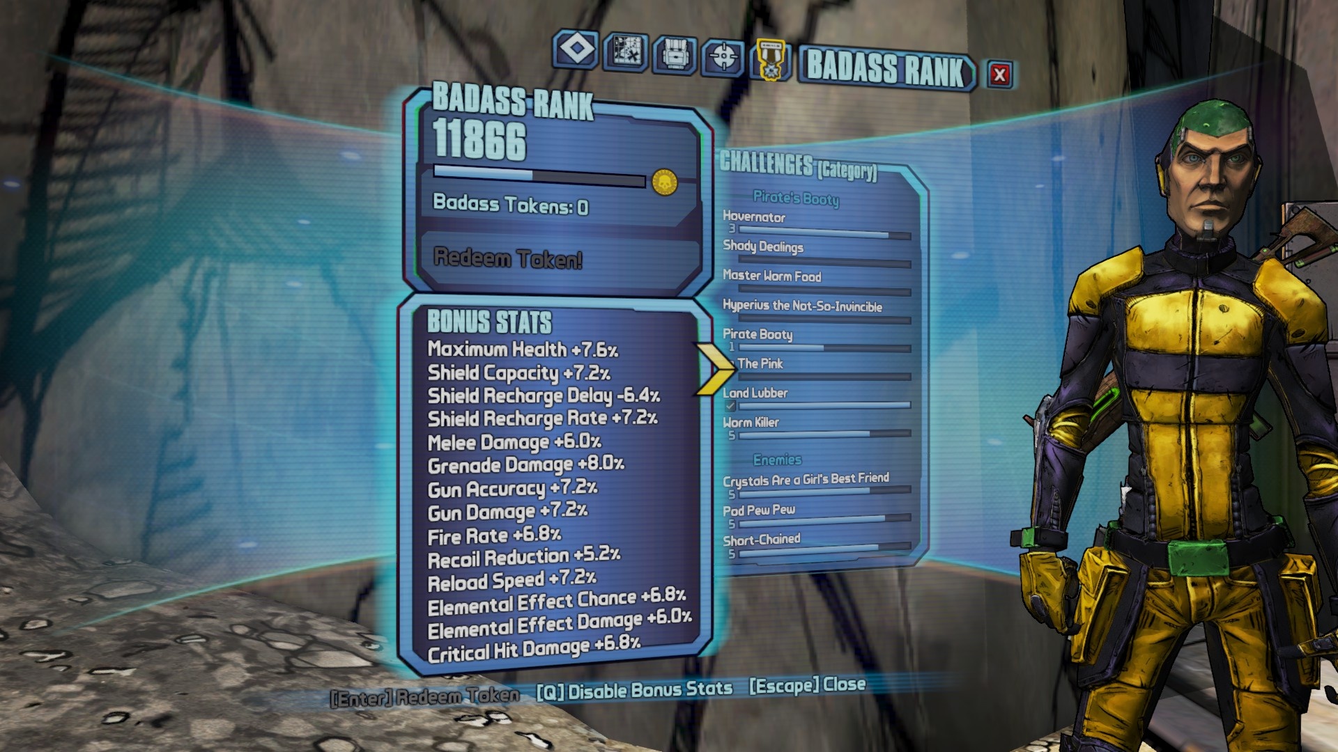 Zijn er nog mensen die zoals ik gaan voor de Badass Challenges? Ik zit aan 150/200 challenges na gisteren al de challenges in Eridium Blight te doen - behalve Tie Clip, want Donkey Mong heb ik nog niet gezien.