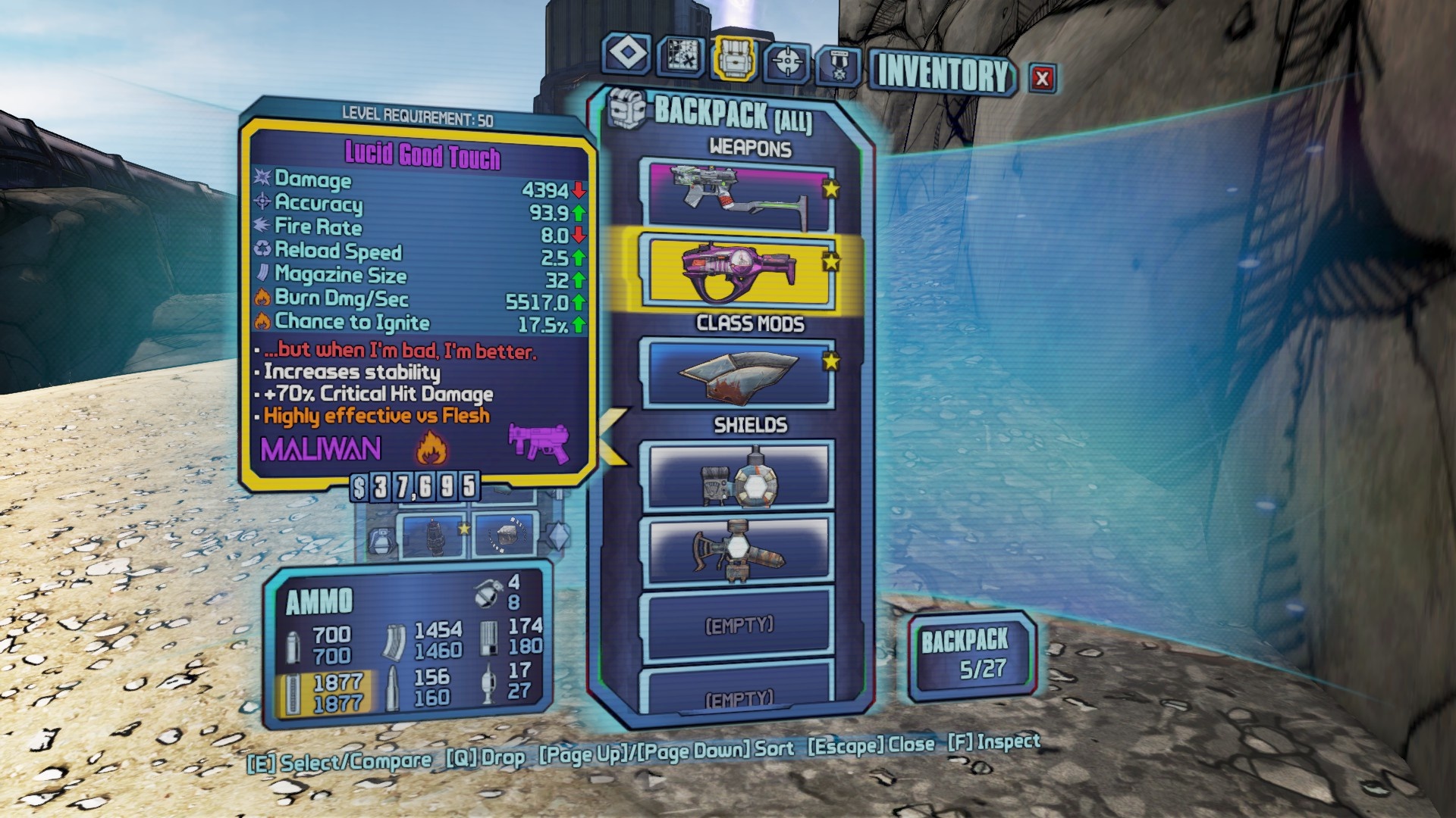 Zelfde vind ik trouwens voor Moxxi guns, die zijn dusdanig goed dat ze als verse 50 heerlijke wapens zijn.