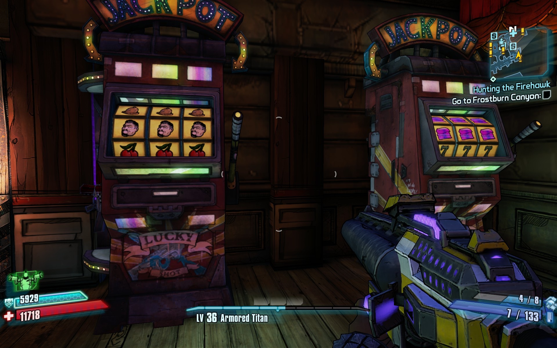 Leuke plek gevonden om erg snel te levelen en geld/equip te verzamelen, ben er net mee van lvl 41 naar 46 getrokken en zo'n 1,5M dollar verdiend. Nadat je de quest slap happy gedaan hebt kun je old slappy blijven killen. Geeft zo'n 10K exp (ongeveer 7 a 8% van een level voor mij) en dropt veel blauwe en paarse loot. Heb em met mijn gunzerker over het algemeen in 5 a 10 seconden kapot. Inclusief looten, reloaden en er weer naar toe rennen kan ik er 1 per minuut afmaken als ik een beetje opschiet. Geen idee of het in de eerste playthrough net zo lekker gaat.