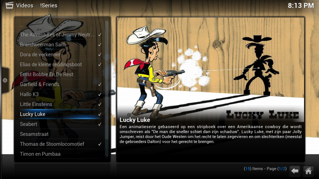 http://wiki.xbmc.org/inde...ary/Naming_files/TV_showsDeels wel (weet zo 1-2-3 niet wat ik kan verwachten wanneer ik gelijk naar 'TV shows' ga). Ik heb bijvoorbeeld een dir 'Lucky Luke' met losse .avi bestanden erin die netjes gescraped is. Wanneer ik nu via Video's -> Files kijk en blader door de losse .avi bestanden dan toont hij bij iedere .avi de gescrapte fanart.