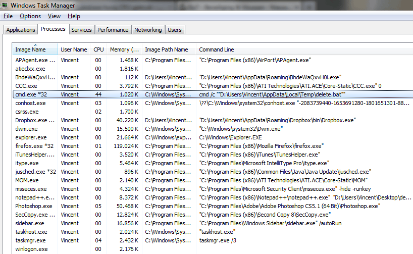 Het viel me vandaag op dat mijn PC (Windows 7 x64 / SP1) nogal traag was. Ik ben eens gaan kijken in de processen, en zag deze er tussen staan: