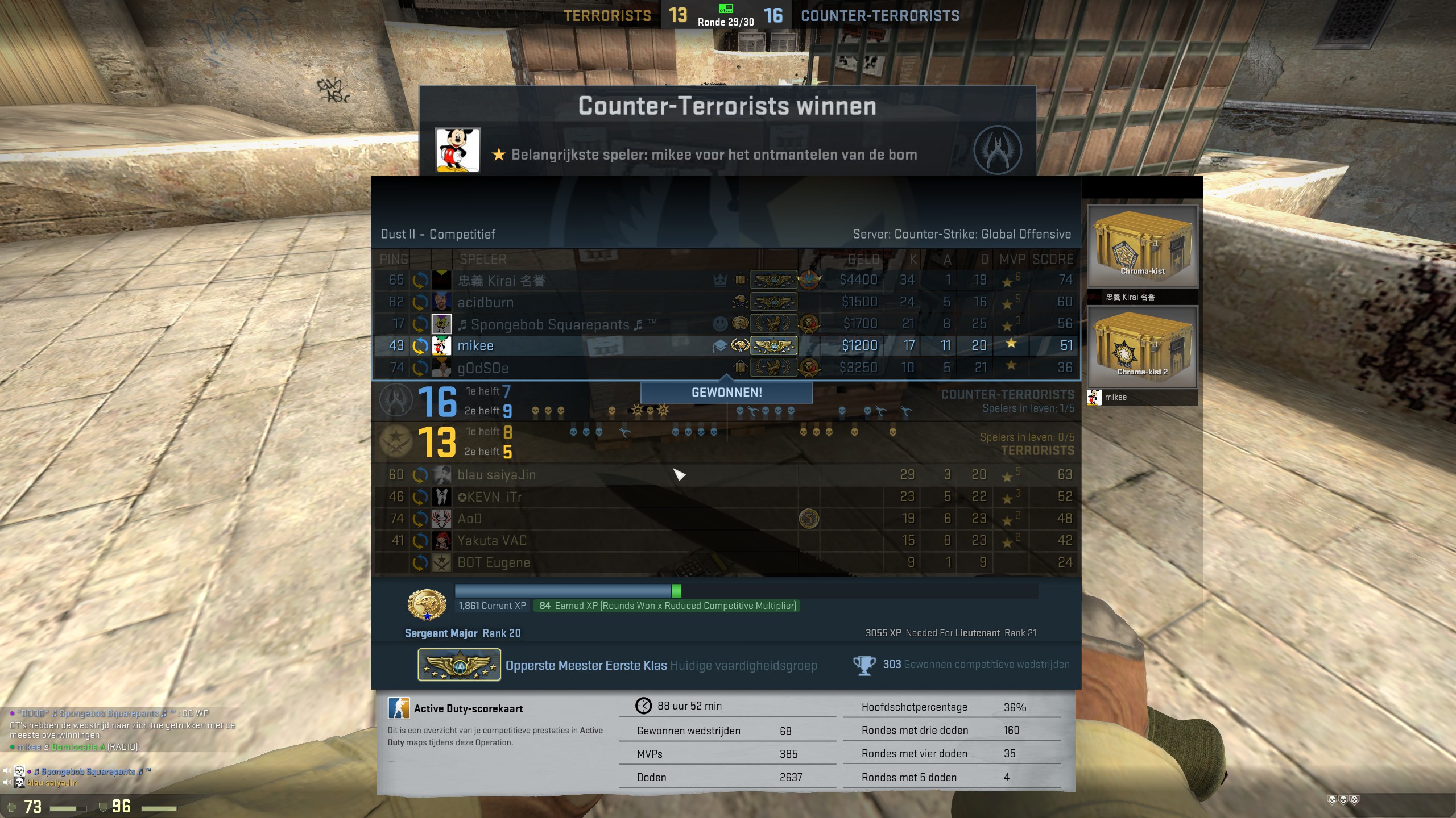 Had trouwens wel in de slechte pot een meesterlijke AWP ronde met een paar kills waarbij ik zelfs zou gaan denken dat ik aan het hacken was. Kreeg wel elke keer de AWP van teammaatjes (ze kochten ze zelfs voor me).