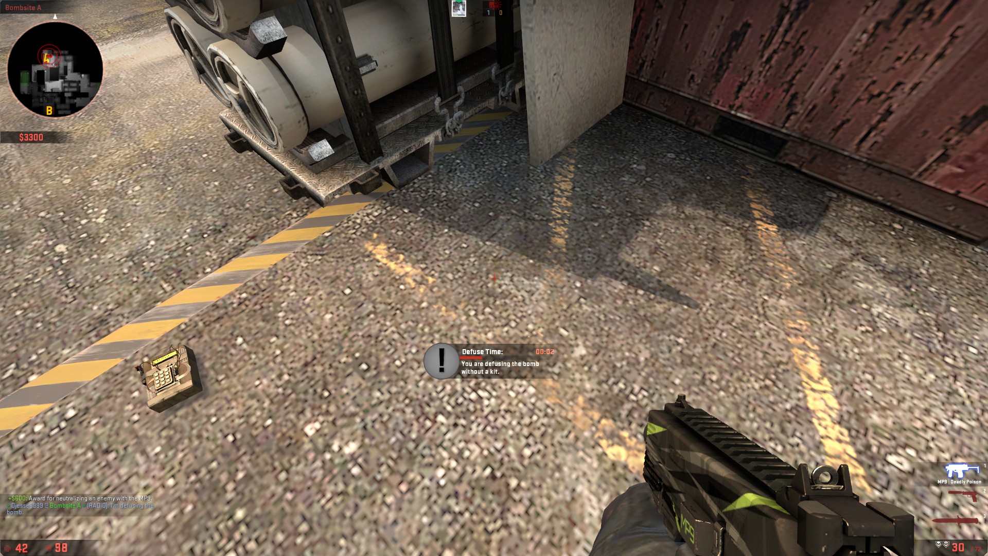 Nade kan enorme schade doen op mensen zonder armour, en p250 heeft lekkere recoil (bijna geen) en goede schade.