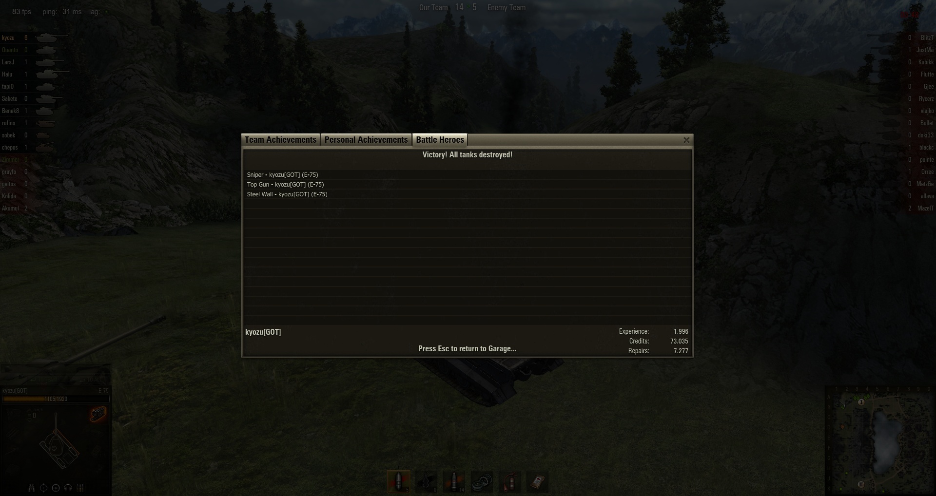 De crew van de SU-8 heb ik overgezet, deze is nu teruggevallen naar 90%, maar na een paar potjes nu alweer op 93%. Camoskill staat aan voor allezes en is gemiddeld 77%.