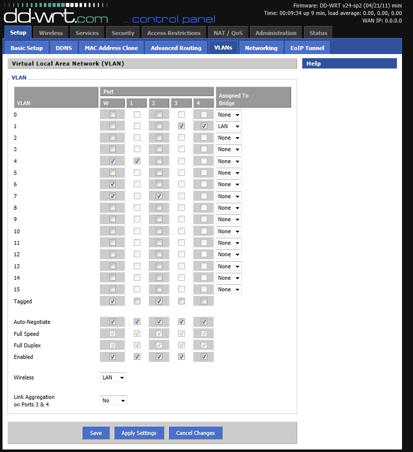 Hieronder een screenshot van mijn VLAN settings.