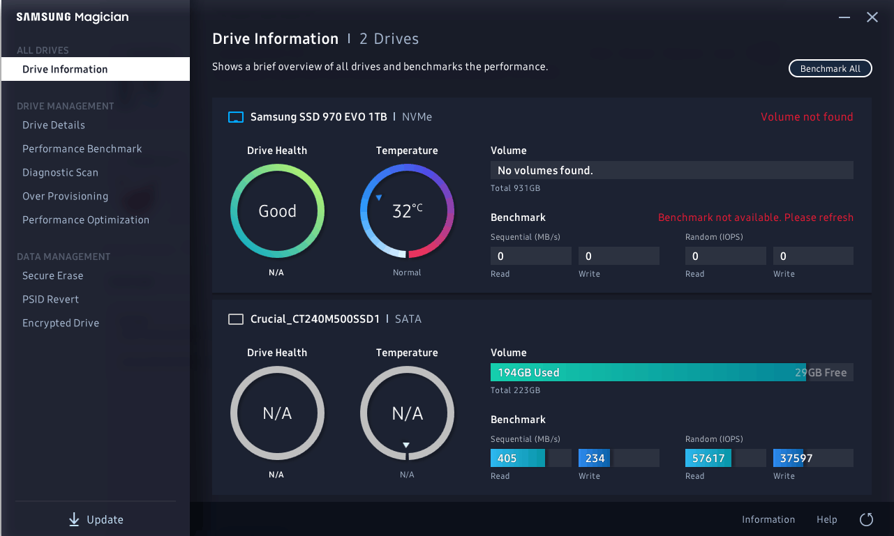 - Update drivers van Samsung SSD naar laatste versie (volgens zowel Windows als Samsung Magician)