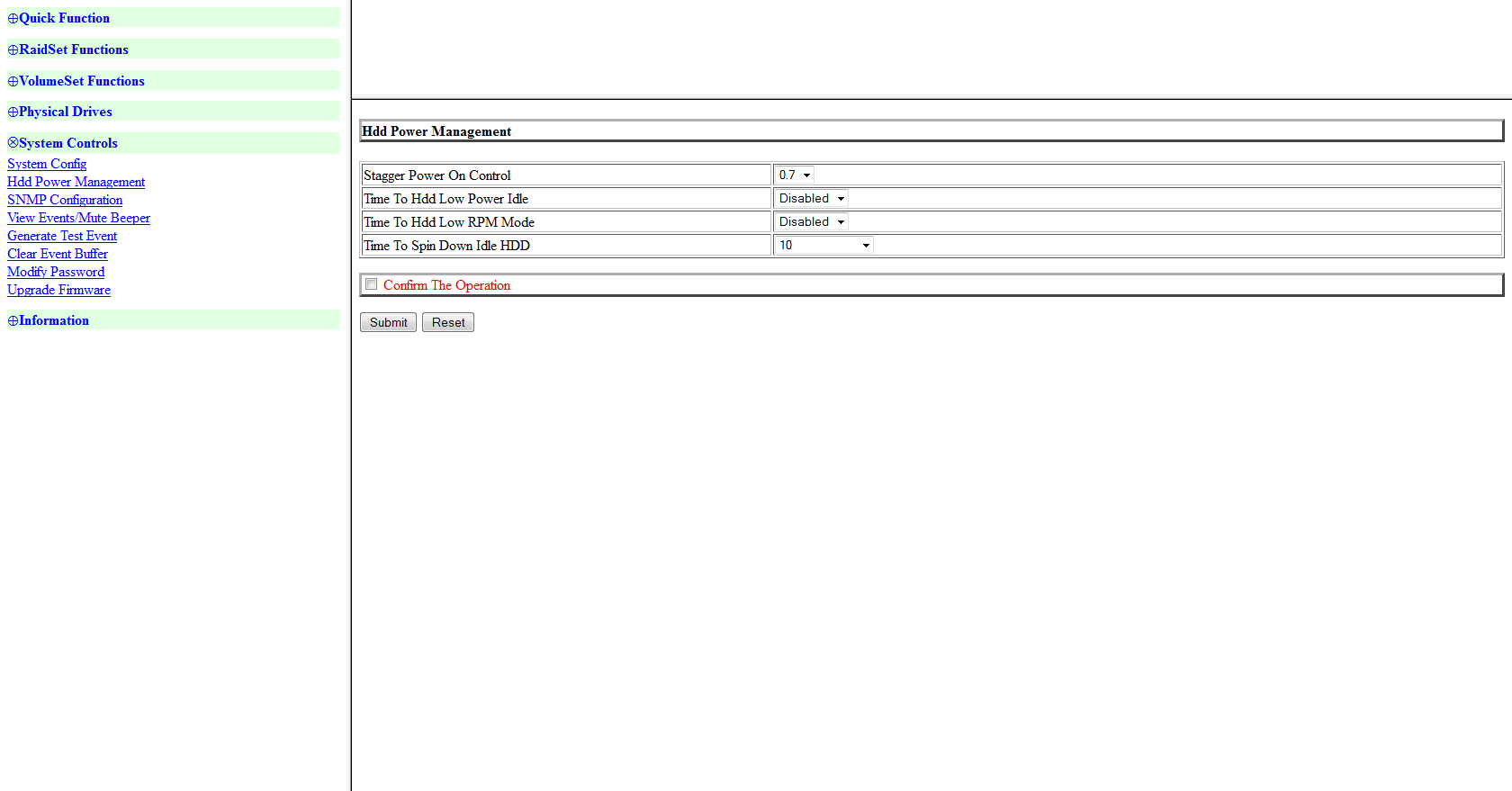 Om de oplossing wat lastiger te maken ben ik opzoek naar een oplossing die tevens zuinig is met energie. Wanneer ik de schijven niet gebruik moeten ze in een stand van laag energie verbruik gaan. Veel RAID controllers lijken dit niet te ondersteunen.