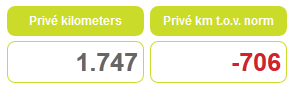 Voor je privé kilometers staat de volgende formule in het dashboard: