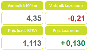 Wat je hier ziet is dat ik een gemiddeld verbruik had van 4,35 sinds de start van deze nieuwe periode. Dat is nogsteeds te hoog, aangezien mijn verbruik t.o.v. norm met 0,21 in het rood staat. Deze 0,21 liter diesel die ik per 100KM teveel verbruik zal ik zelf moeten betalen. Echter, Capgemini verrekent ook de prijs die je betaalt voor je brandstof met dit bedrag. Zoals je daar ziet heb ik schijnbaar 13 cent goedkoper getankt dan het bedrag waar zij rekening mee hebben gehouden.