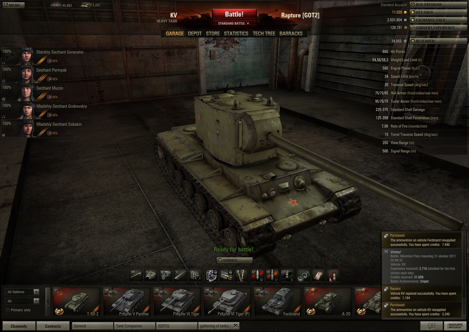 mijn winrate omhoog gekregen naar 57% en xp per pot naar 760. Ik ben een tevreden man. De extra Witmanns/boelter, (?) maakt een stuk goed. nog 128k tot de IS-4