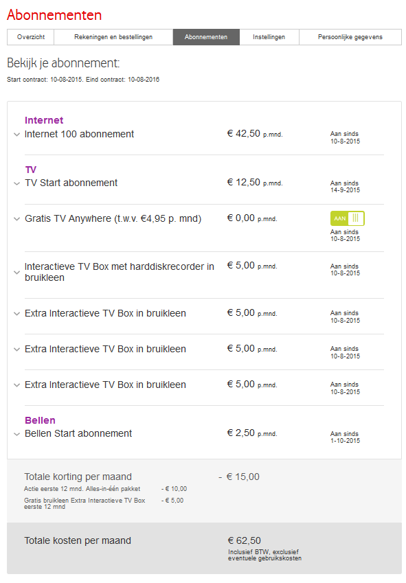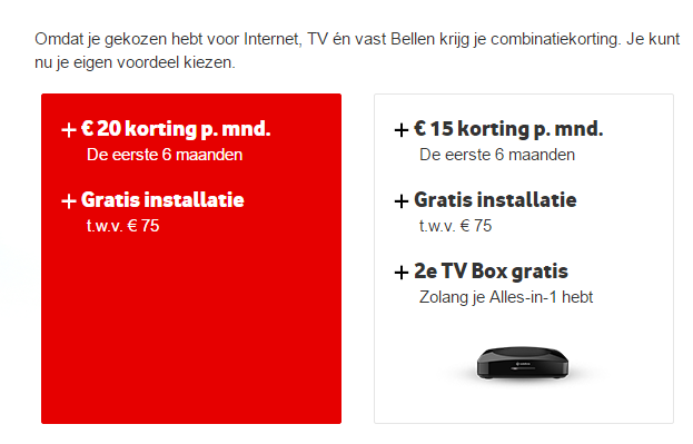 Nu heb ik nog een eigen router en eigen tv decoders, dit gaat op termijn dus vervallen. Echter omdat wij ook al jaren twee VF RED abbo's hebben, kan de combikorting nu wel interessant genoeg worden.