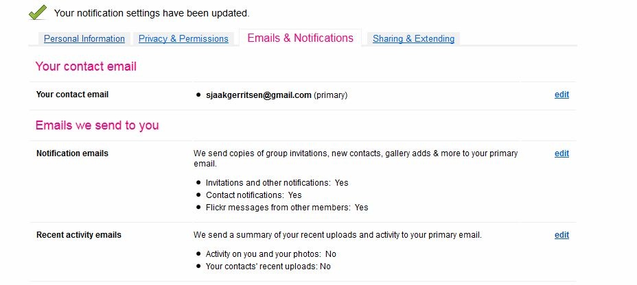 Én kennelijk om andere mailtjes, maar in alle gevallen van mensen die ik niet als contact heb op Flickr. Ik meld me aan bij Flickr met mijn Gmailadres, maar heb nooit toestemming gegeven om de mensen uit die lijst te spammen..Ik krijg een mail wanneer contacten nieuwe foto's uploaden, is dat niet het probleem? Ze hebben echter als afzender Flickr Mail (no-reply-contacts@flickr.com).