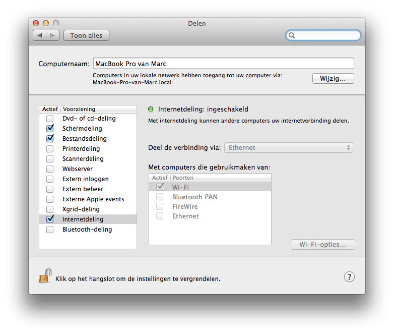 Nu zou ik graag willen dat de MacMini het draadloze netwerk versterkt/vergroot omdat deze toch via ethernet is aangesloten. Wat ik wel kan vinden is deze een nieuw draadloos netwerk aan te laten maken, maar dan zit ik met 2 verschillende draadloze netwerken en dat is juist niet de bedoeling.