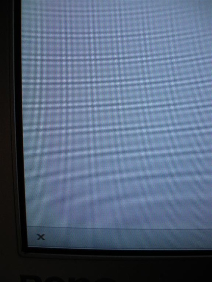 Ik heb een tweedehands monitor van iemand gekregen, een BenQ FP231W. Bij het aanzetten viel me op dat over de hele monitor (bij een wit scherm) een rode waas over het scherm valt, behalve dan op de buitenste centimeter. Op de onderstaande foto kun je redelijk goed zien hoe dit eruit ziet, op de foto staat de linkeronderhoek.