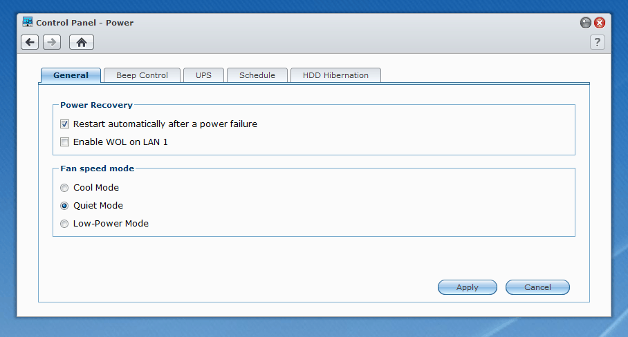 Controleer eerst de instellingen in het configuratiescherm --> Power in DSM. Bij Harddisk tab kun je de instellingen nakijken.