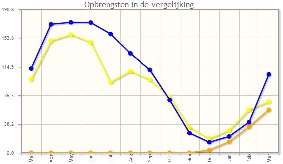 mijn west paneeltjes hebben een 3 uurs verschoven prima opbrengst,