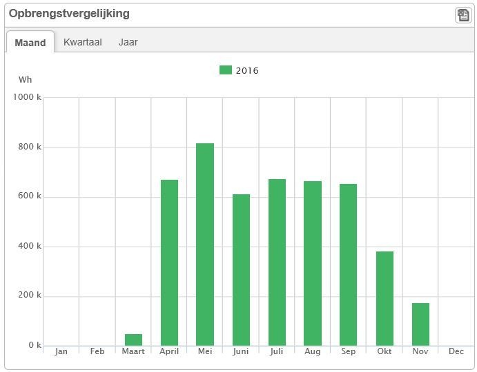 Totaal verbruik tot nu toe 09-02-2016 - 30-11-2016