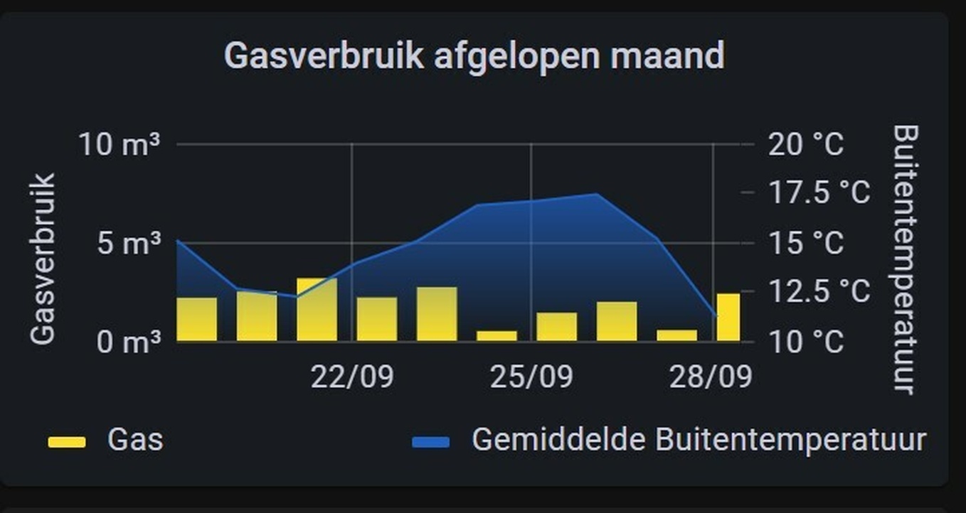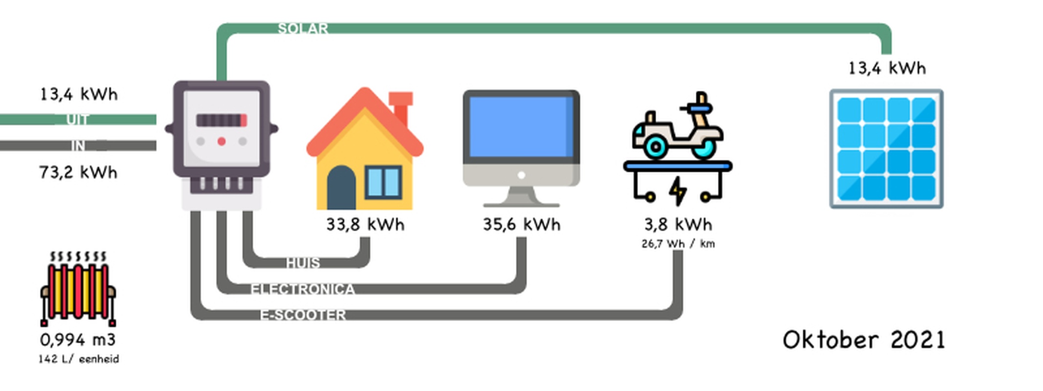 Gasverbruik per jaar: 1600m3. Hiervan is 216m3 per jaar voor sww/koken