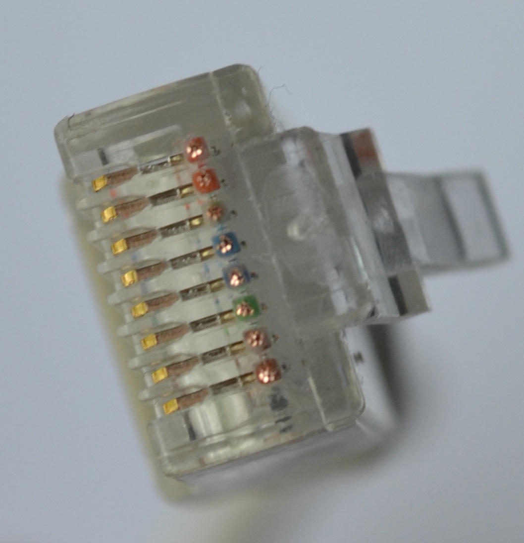 Het was verder een prima kabel met 8 koperen aders, dus beide stekkertjes afgeknipt en nieuwe op gezet.